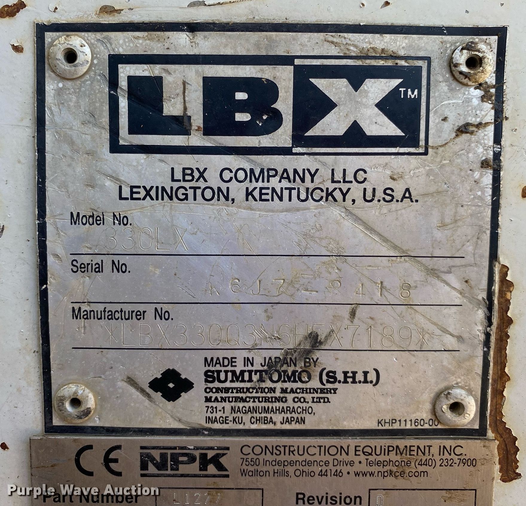 Purple Wave is selling a used Hydraulic Excavator in Oklahoma. This item is a 2007 Link Belt 330LX excavator with the following: Hours: 7,763 on meter, Serial: K6J7Z2418