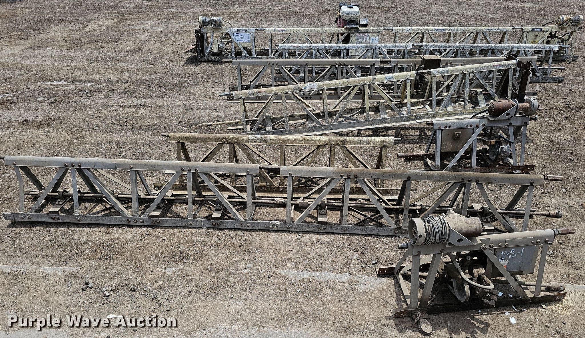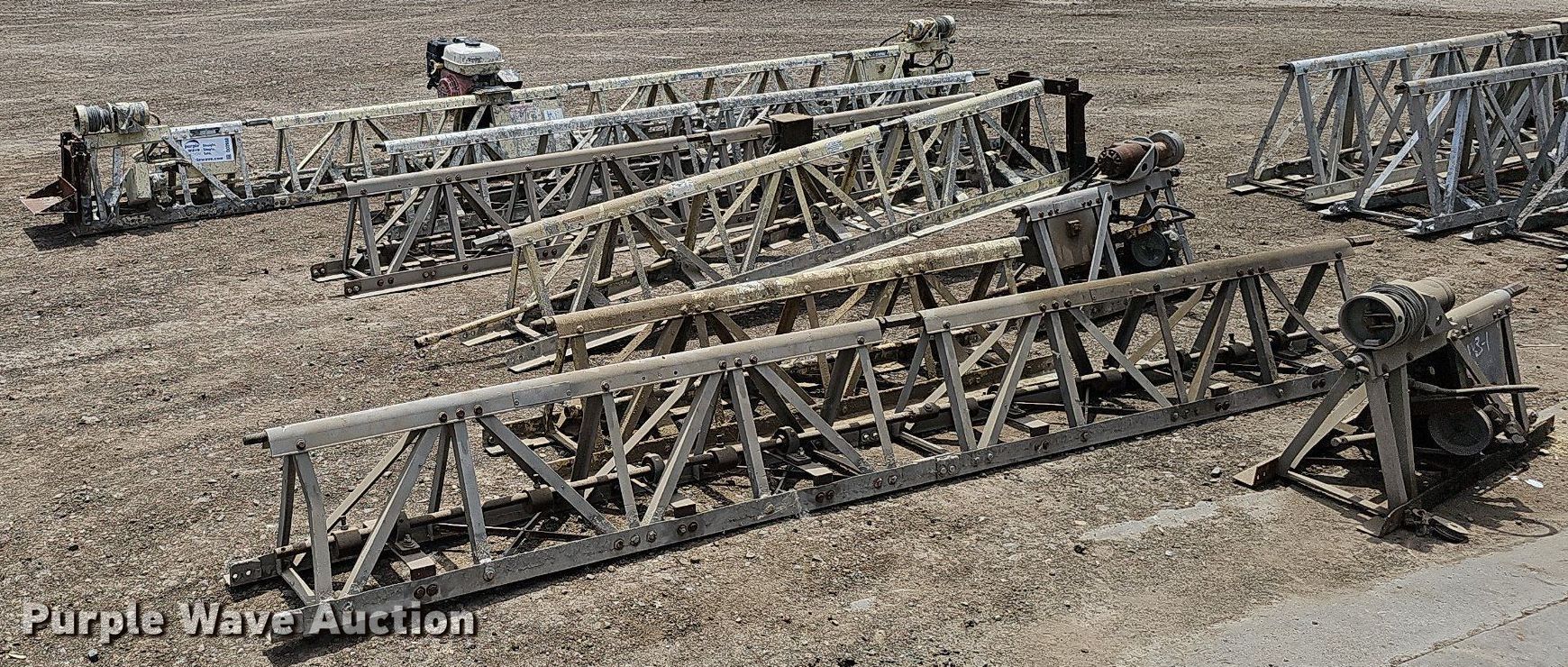 Terex Amida OM60STD screed. Engine. Honda, Cylinders: 1, Fuel type: Gas, HP: 5.5. Features 15'L x 14"H screed with end winches, (2) 30" sections with end winches, (5) additional extensions (3) 10'L, 8'L, 5'L. Inline Construction. 930 Jayhawk Rd. Marysville, KS 66508