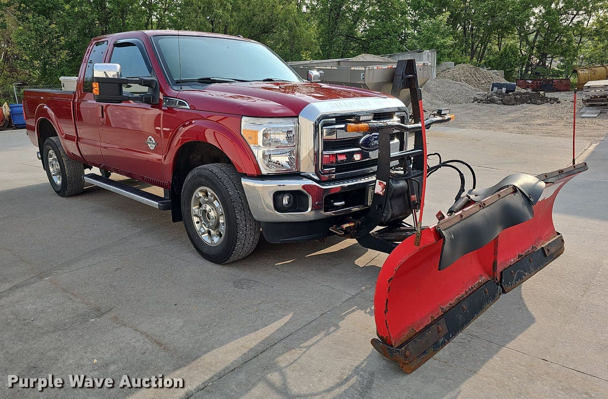 2014 Ford F250 Super Duty Lariat SuperCab pickup truck. Miles: 33,935 on odometer, VIN: 1FT7X2BT8EEB77693. Engine Displacement: 6.7L V8 OHV, Cylinders: 8, Fuel type: Diesel. Transmission Automatic, Four wheel drive. Interior AC, Heat, Seat: Heated, Power driver, Power passenger, Power windows, Power locks, Cruise control, Backup camera. Features Boss snow plow Width: 98". Tires Size: LT275/70R18. Notes DEF system deleted, Windshield chipped or cracked, Hail damage. Nebraska title. Title distribution may be delayed up to 14 days from verification of funds. Ryba Construction Inc.. 8222 Serum Avenue. Ralston, NE 68127