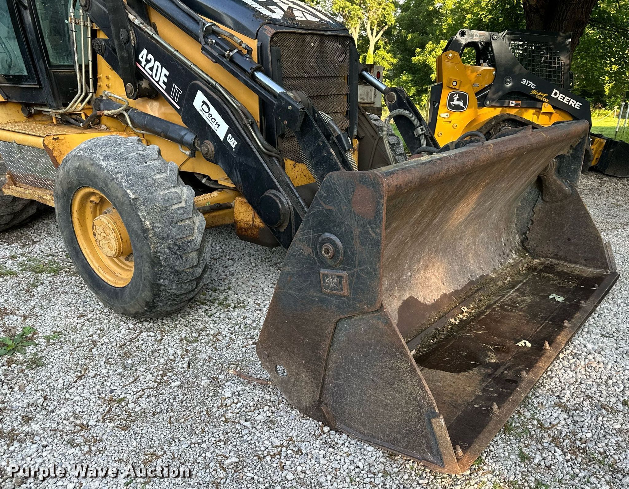2006 Caterpillar 420E IT backhoe. Hours: 9,711 on meter, Serial: CAT0420EAKMW00580. Engine Caterpillar, Cylinders: 4, Fuel type: Diesel. Transmission Shuttle shift, 4F - 4R. Chassis Four wheel drive, Differential lock. Operators station Enclosed cab, AC, Heat, Backhoe controls: Pilot control, Pattern changer. Features Loader IT Carrier, Quick coupler: Hydraulic, Bucket Four-in-one, Width: 89", Cutting edge: Bolt-on, Forks Length: 54", Backhoe Extendable stick, Bucket Width: 22", Cutting edge: Weld-on, Teeth: 5, Caterpillar plate compactor 38" L x 23" W, (2) hydraulic breakers. Tires Front: 320/80R18, Rear: 19.5L-24. View repairs. R & R Enterprises of K.C.. Kansas City, KS 66101