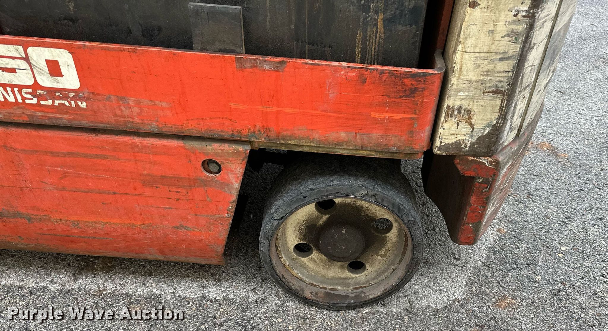 Purple Wave is selling a used Warehouse Forklift in Oklahoma. This item is a Nissan 50 forklift with the following: Hours: 12,782 on meter, Serial: CWPO-9C1456