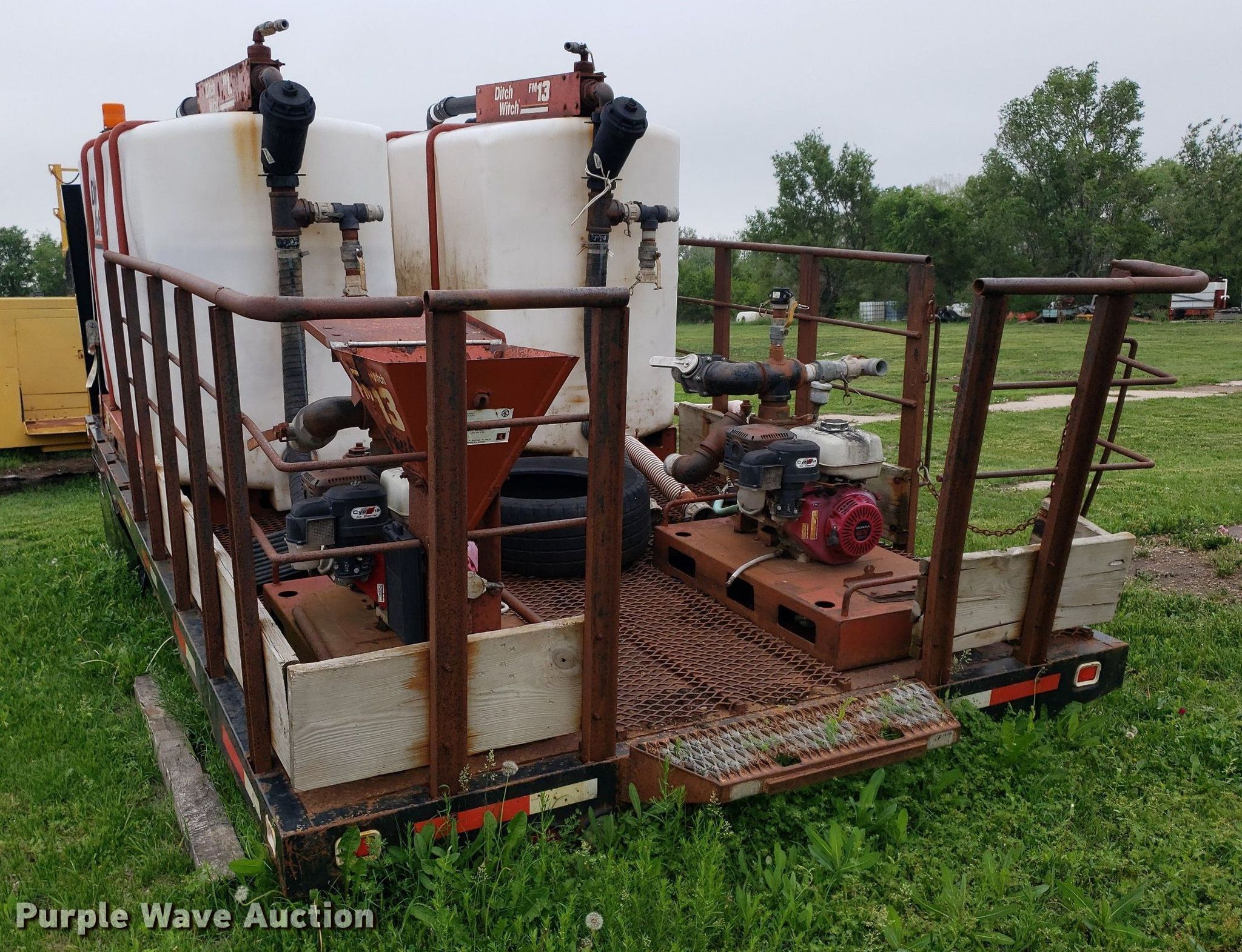 Knapheide PVMXWT-183C flatbed. Serial: 914991-2003. Features 18' 7" L x 98" W, Bed type: Steel, Ditch Witch FM13 mud mixers (2) 950 gallons poly tanks, (2) Honda GX390 engines Unknown operating condition.. Source: HDD. 1816 E. Wasp Road. Hutchinson, KS 67501