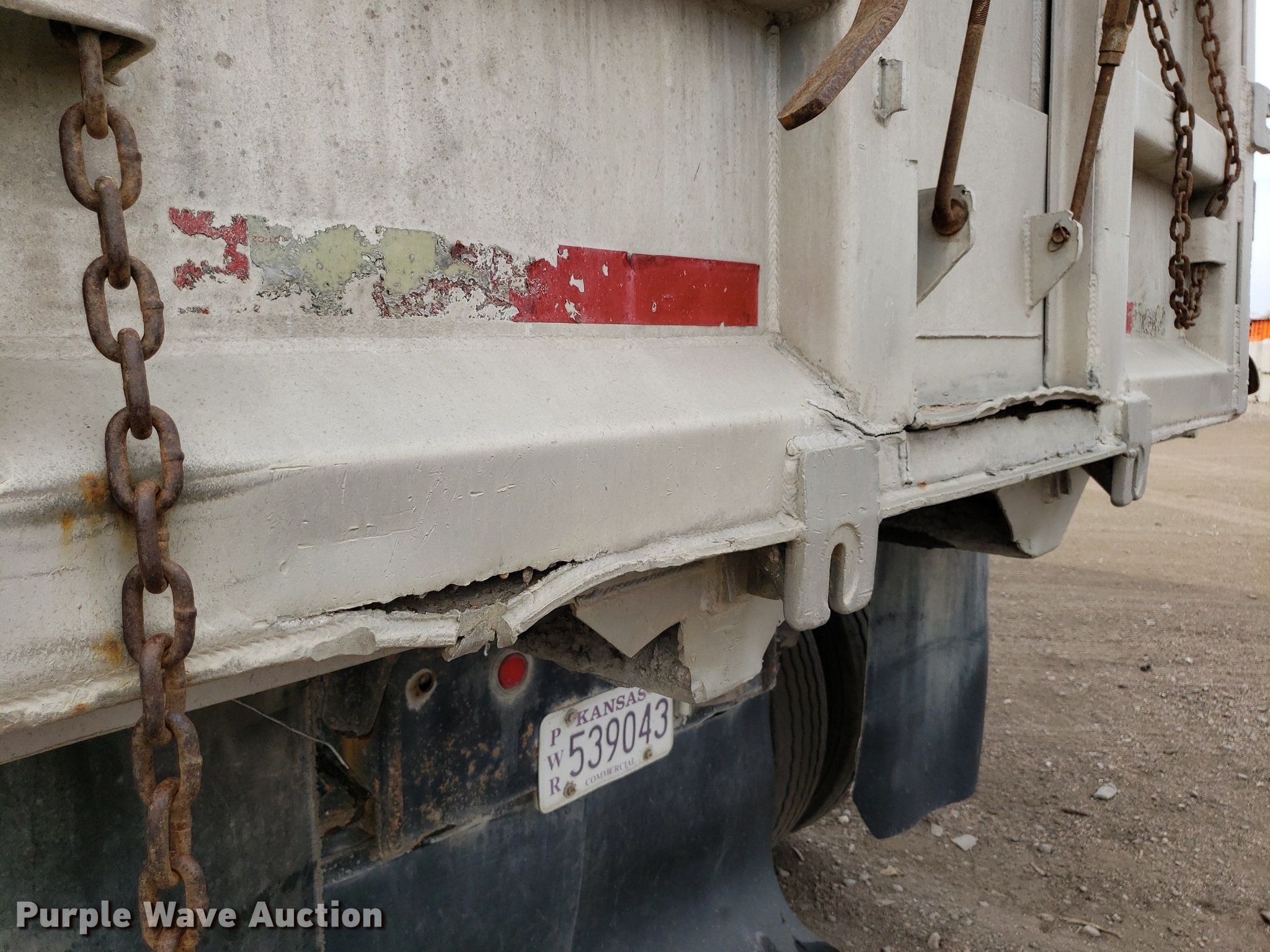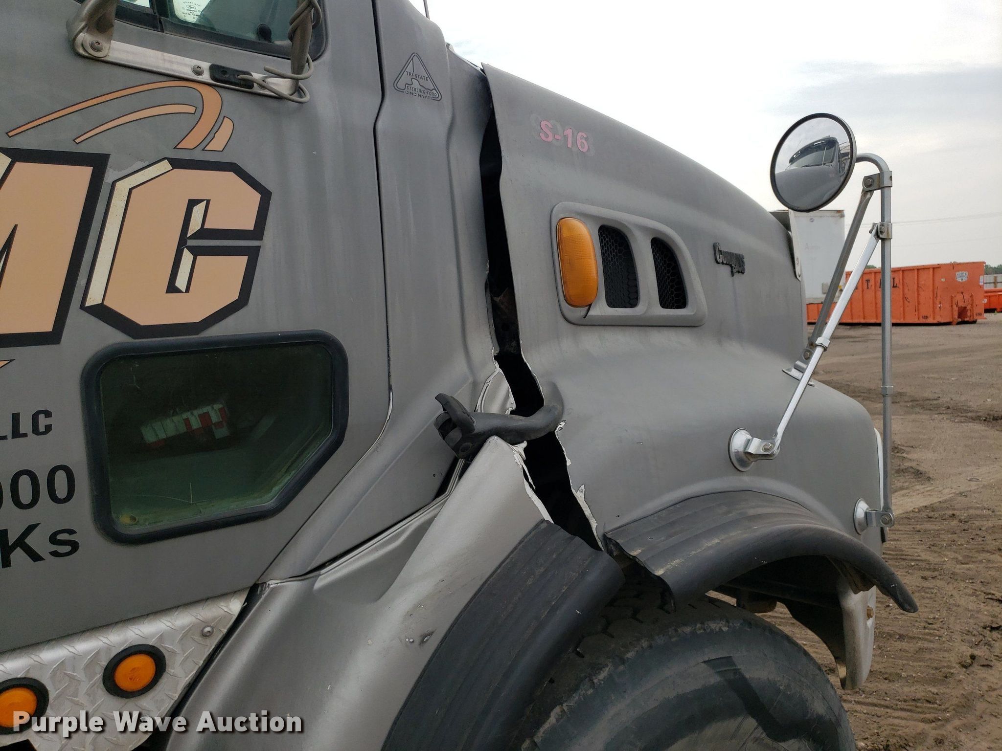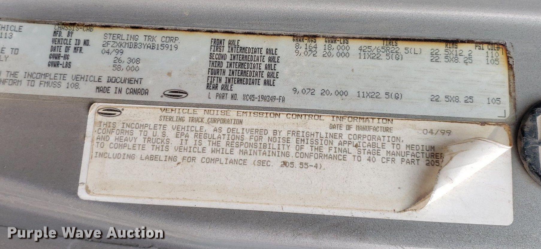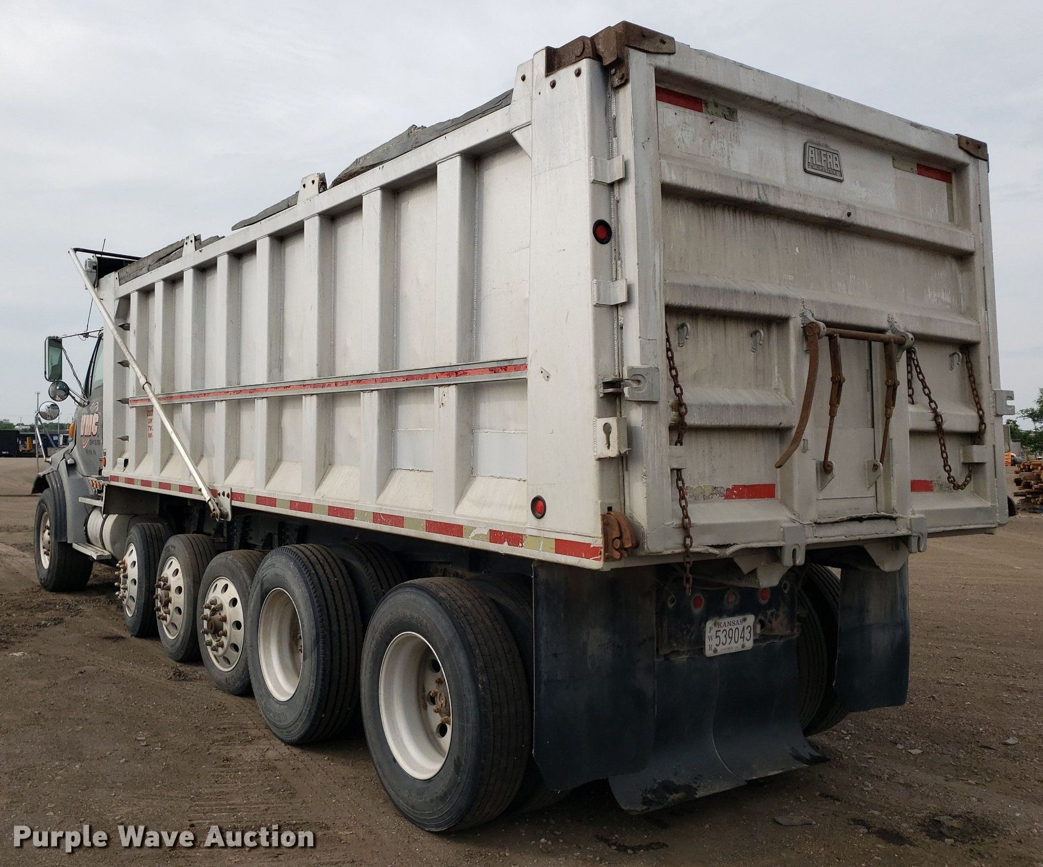 2000 Sterling L/LT9500 dump truck. Miles: 408,924 on odometer, VIN: 2FZXKMDB3YAB15919. Engine Displacement: 10.8L, Cylinders: 6, Fuel type: Diesel, Engine brake. Transmission Manual, Speed: 10. Chassis Axles: 5, Pusher axles, Differential lock: Inter-axle, Suspension: Spring over walking beam, Brakes: Air, PTO, GVWR: 58,000 lbs. Interior AC, Heat, Heated mirrors, Power windows. Features Dump bed Alfab 21-60-69, 21' L x 96" W, Side height: 69", Bed type: Aluminum, Roll tarp, Ram: Single , End gate: Air operated. Tires Front: 425/65R22.5, Rear: 11R22.5. Kansas title. Title distribution may be delayed up to 14 days from verification of funds. AMR Steel. 800 E 21st St N. Wichita, KS 67214
