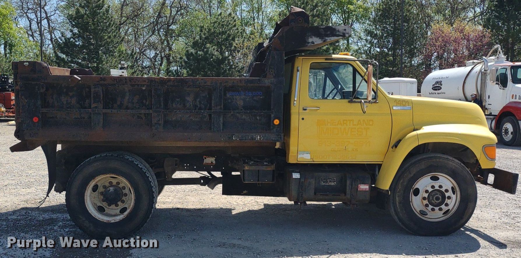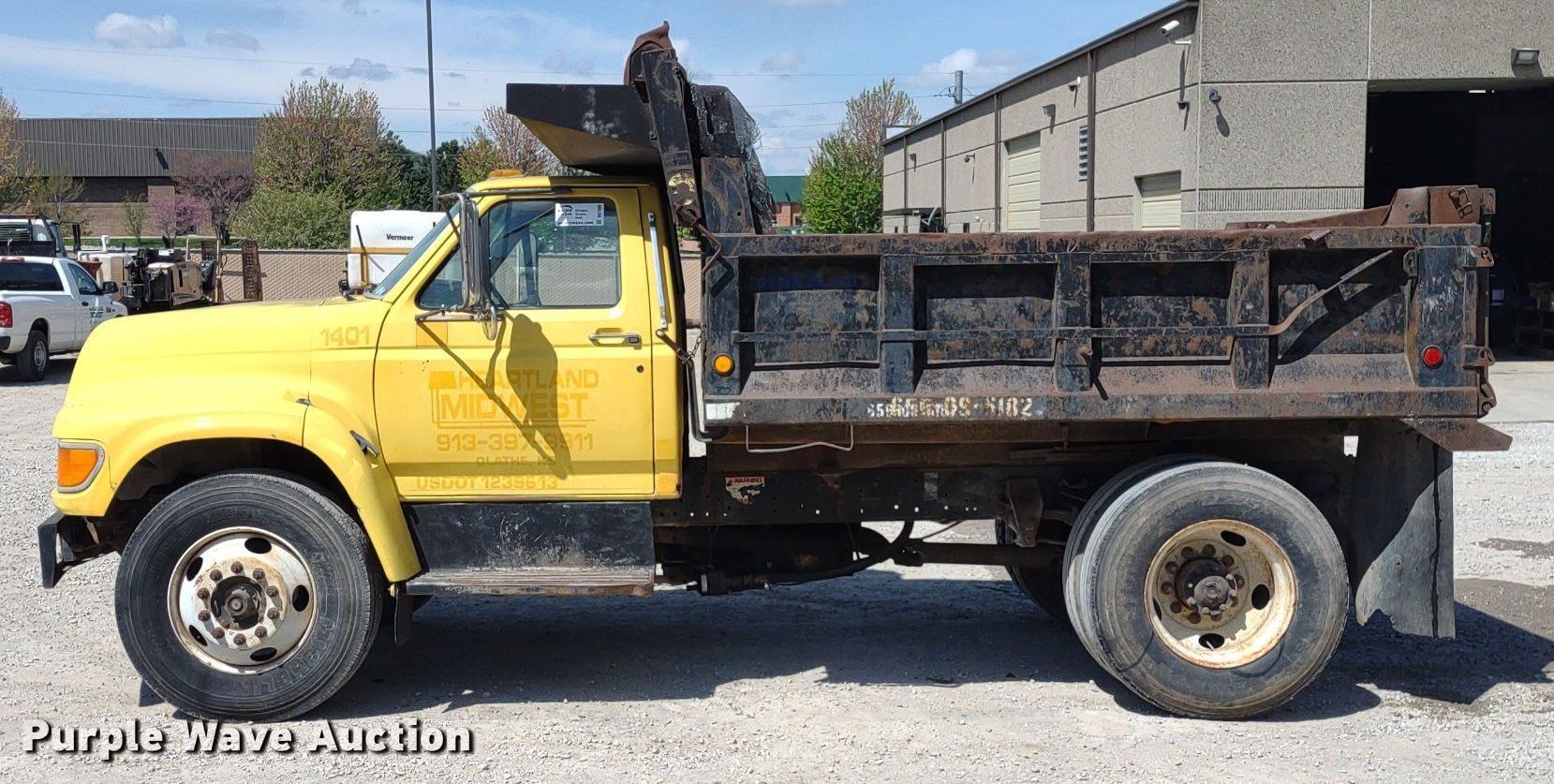 Purple Wave is selling a used Construction Dump Truck in Kansas. This item is a 1995 Ford F800 dump truck with the following: Miles: 105,403 on odometer, Hours: 7,834 on meter, VIN: 1FDPF80C1SVA76818