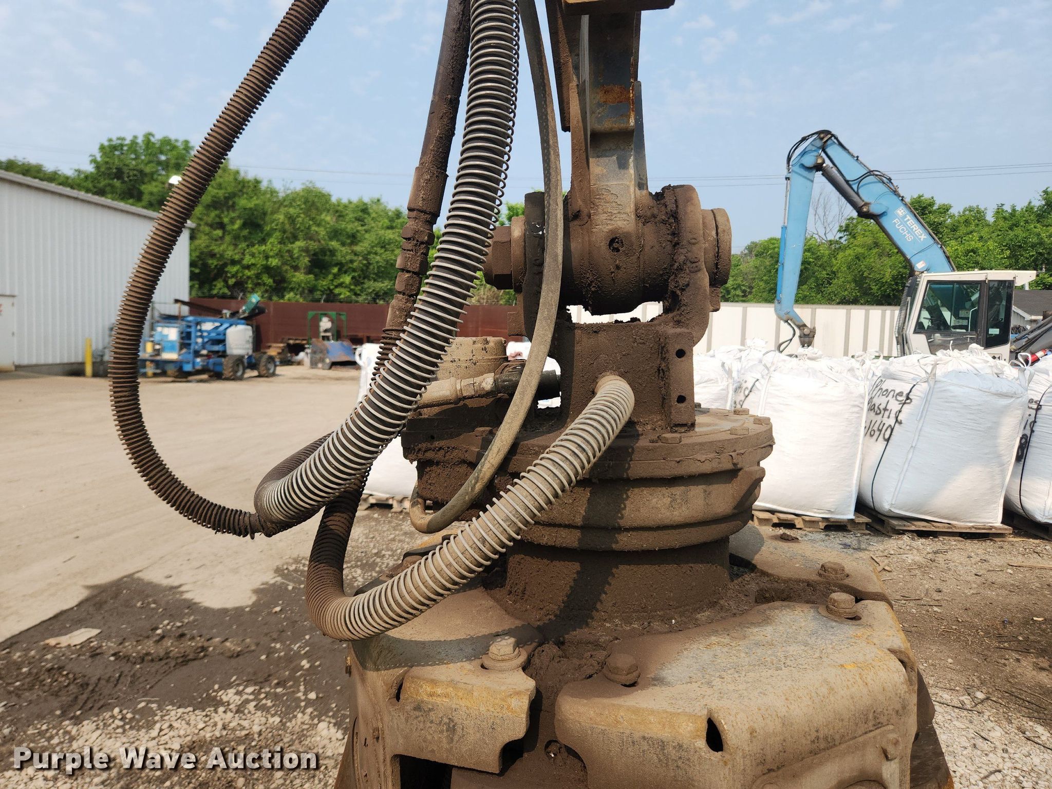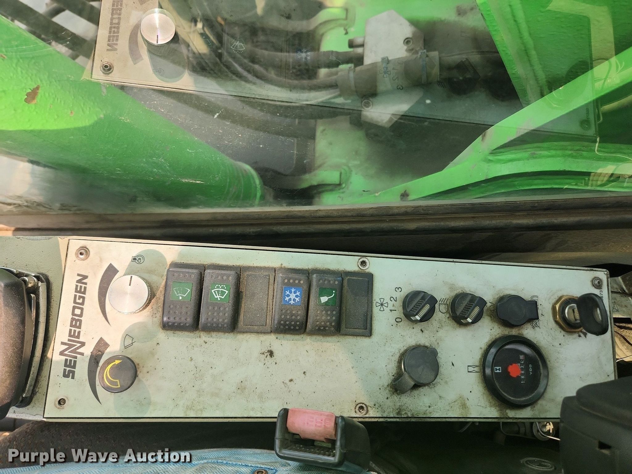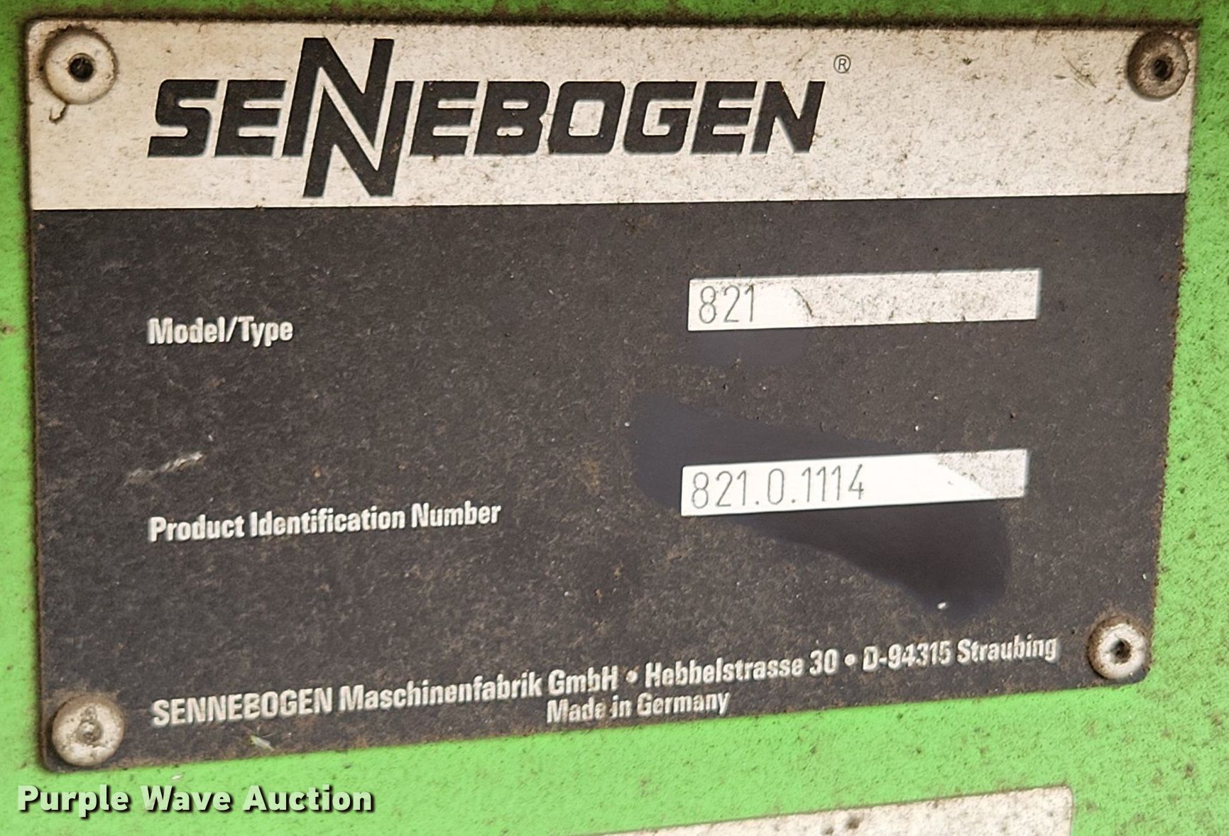 2008 Sennebogen 821 material handler. Hours: 18,834 on meter, Serial: 821.0.1114. Engine Cummins , Cylinders: 4, Fuel type: Diesel. Transmission Hydrostatic, Two speed travel. Operators station EROPS Hydraulic elevating, AC, Heat. Features Auxiliary hydraulics Two-way, Boom Standard, Material handling stick Stick length: 14' 4", Rotating grapple Rotobec. Tires Size: 10.00-20. Wieland TOTALL Metal Recycling. Granite City, IL 62040