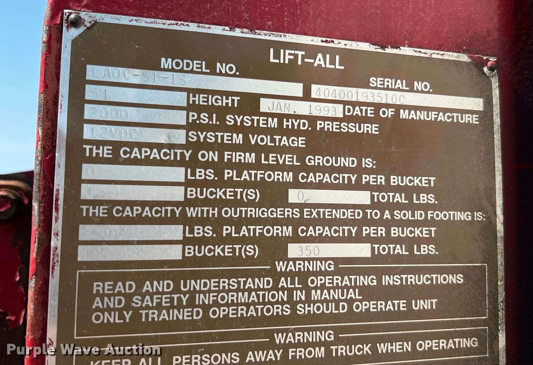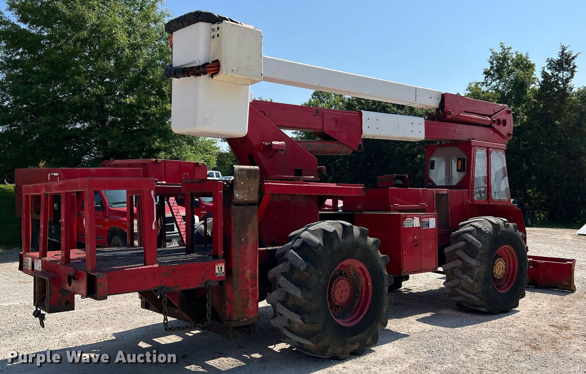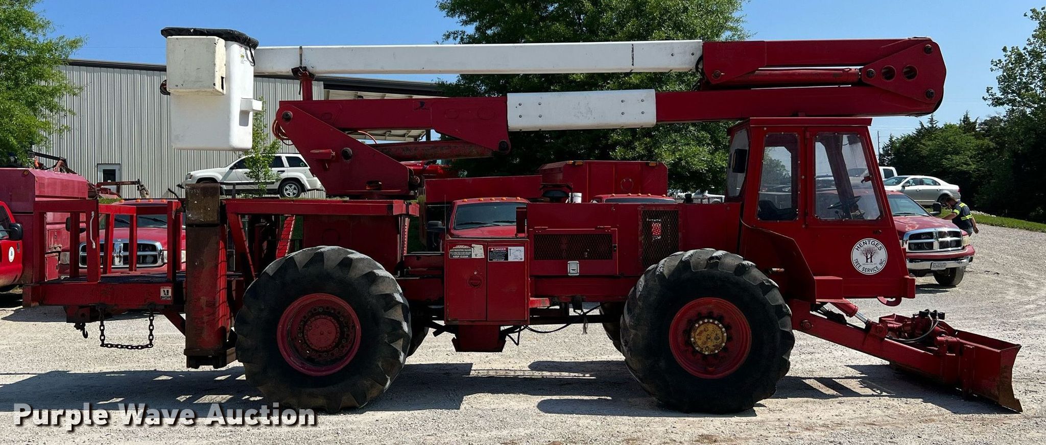 Brown Bear 9116B skidder. Hours: 3,586 on meter, Serial: 9116B-9004. Engine Cummins 6B, Serial: 60292291, Displacement: 5.9L, Cylinders: 6, Fuel type: Diesel, HP: 115. Transmission Powershift. Chassis Four wheel drive. Operators station EROPS. Features Boom Lift-All LA0C-51-1S, Serial: 4040093510C, Maximum lift capacity: 350lbs, Maximum lift height: 51', Boom type: Articulating, Man basket, Boom controls: Ground, Platform/ basket, Blade Width: 102", Winch. Tires Size: 23.1-26. Notes Broken rear driveshaft, Rear differential disassembled. Hentges Tree Service, Inc.. 5905 Old Lohman Rd. Jefferson City, MO 65109
