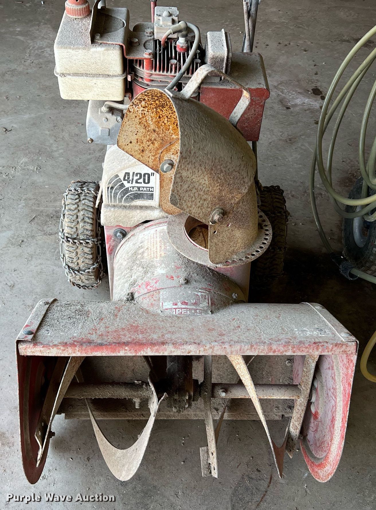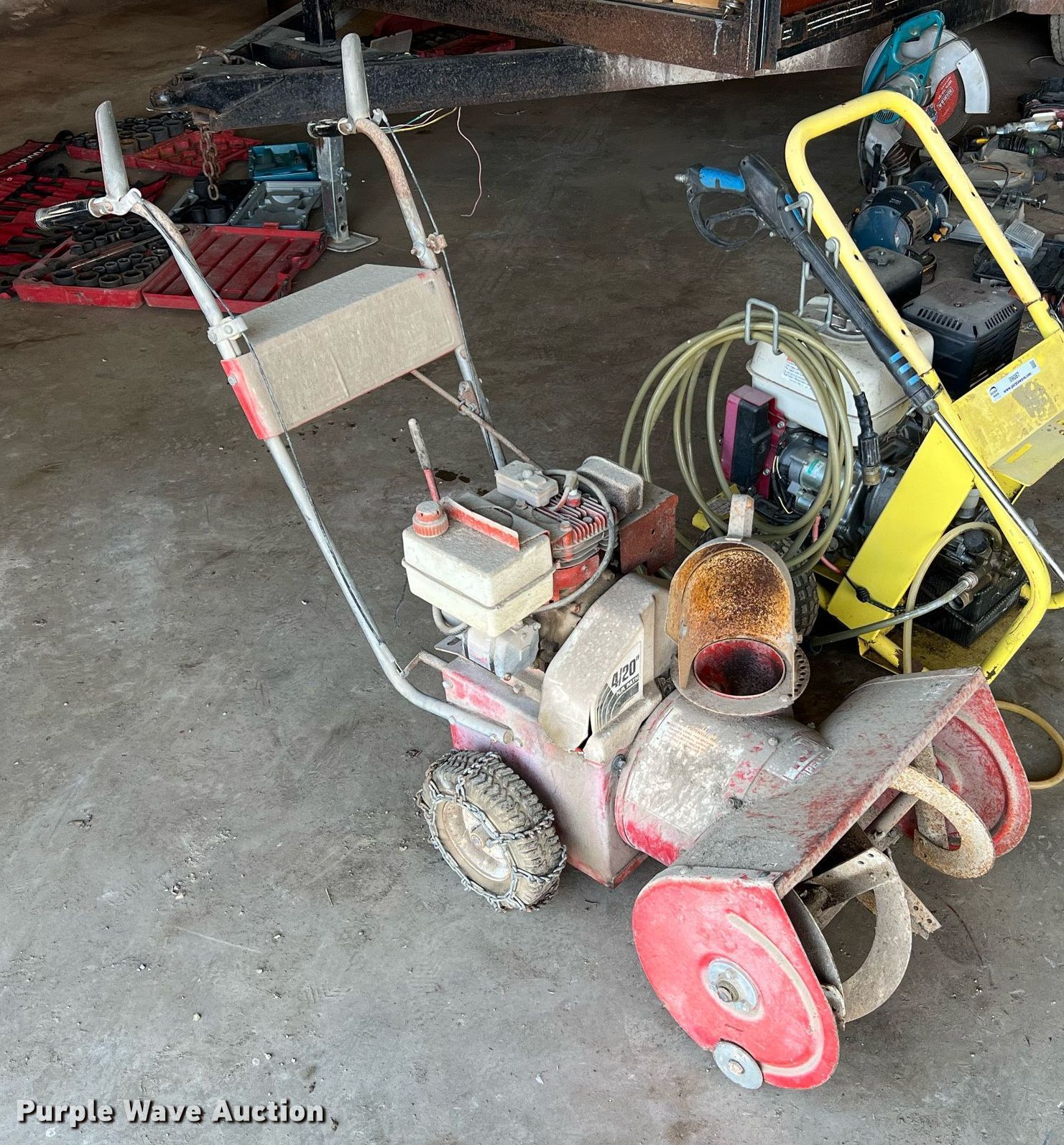 (2) pieces of support equipment. Kircher pressure washer. Engine. Honda, Fuel type: Gas. Craftsman snow blower Two stage, Electric start, Unknown operating condition. Don Hanson Retirement Auction. 3310 State Road Hh. Kingdom City, MO 65262