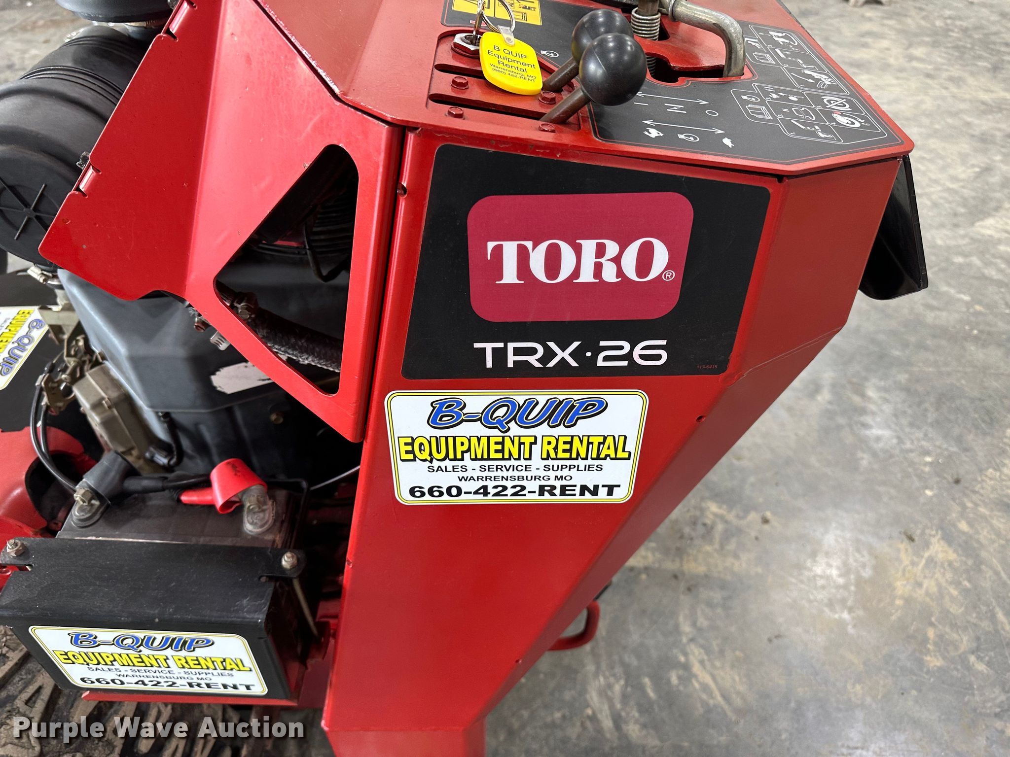 Purple Wave is selling a used Trencher or Rock Saw in Missouri. This item is a Toro TRX-26 trencher with the following: Hours: 8 on meter, Serial: 314000116