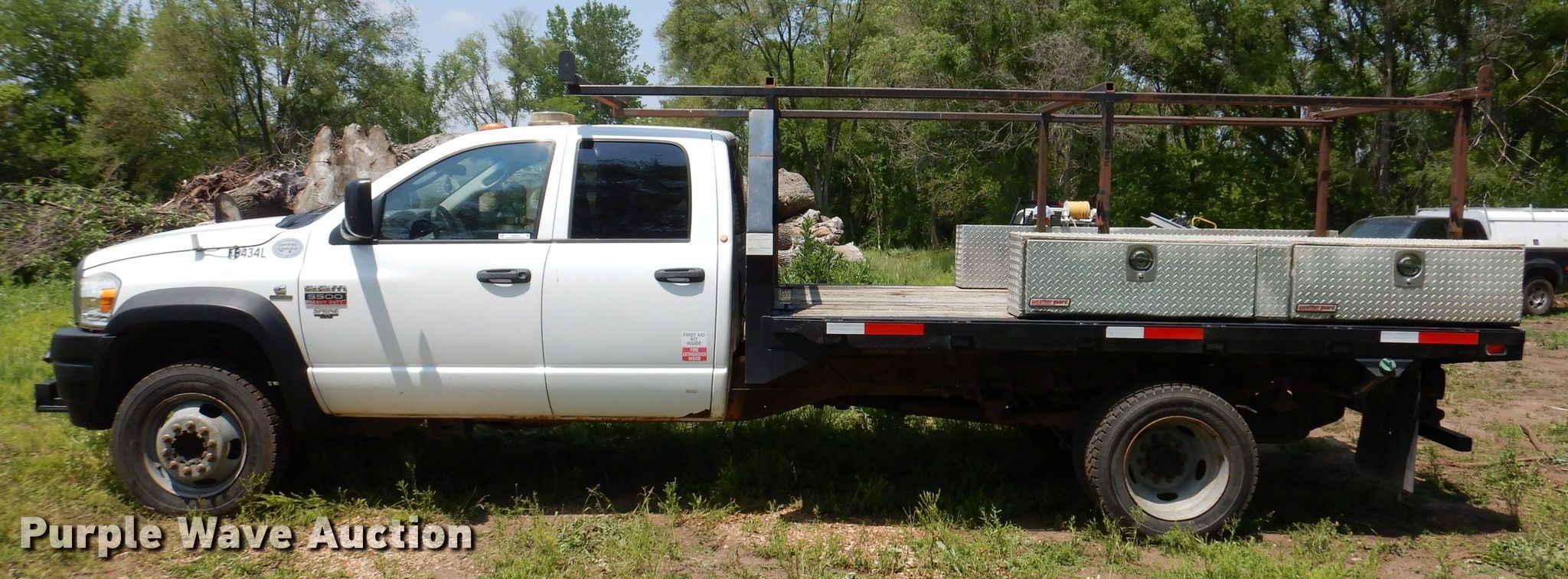 This 2008 Dodge Ram 5500 Quad Cab flatbed truck will sell to the highest bidder regardless of price.