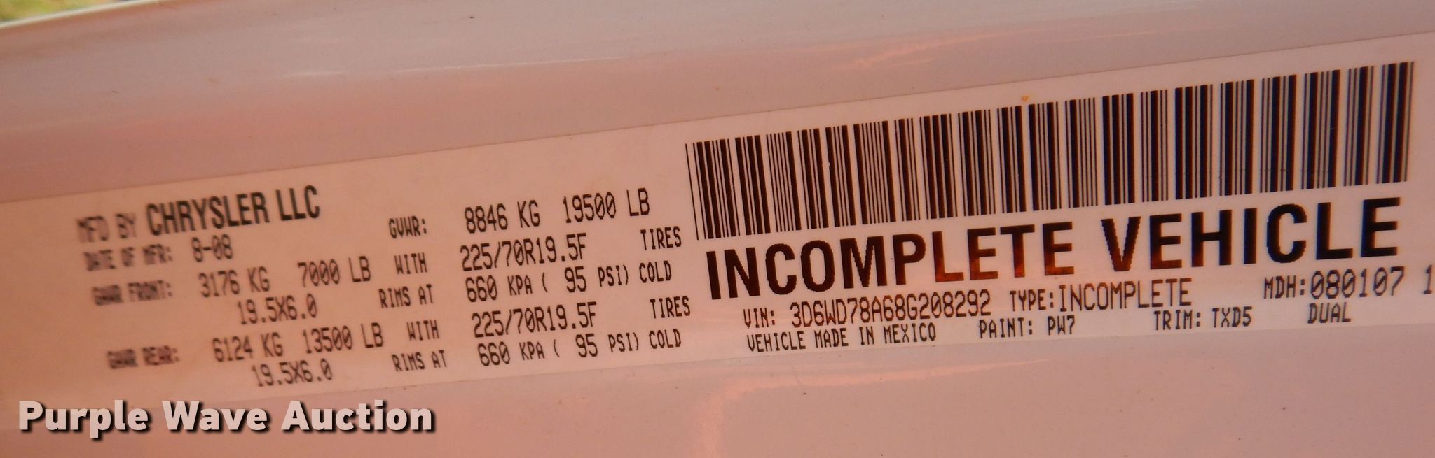 - VIN: 3D6WD78A68G208292