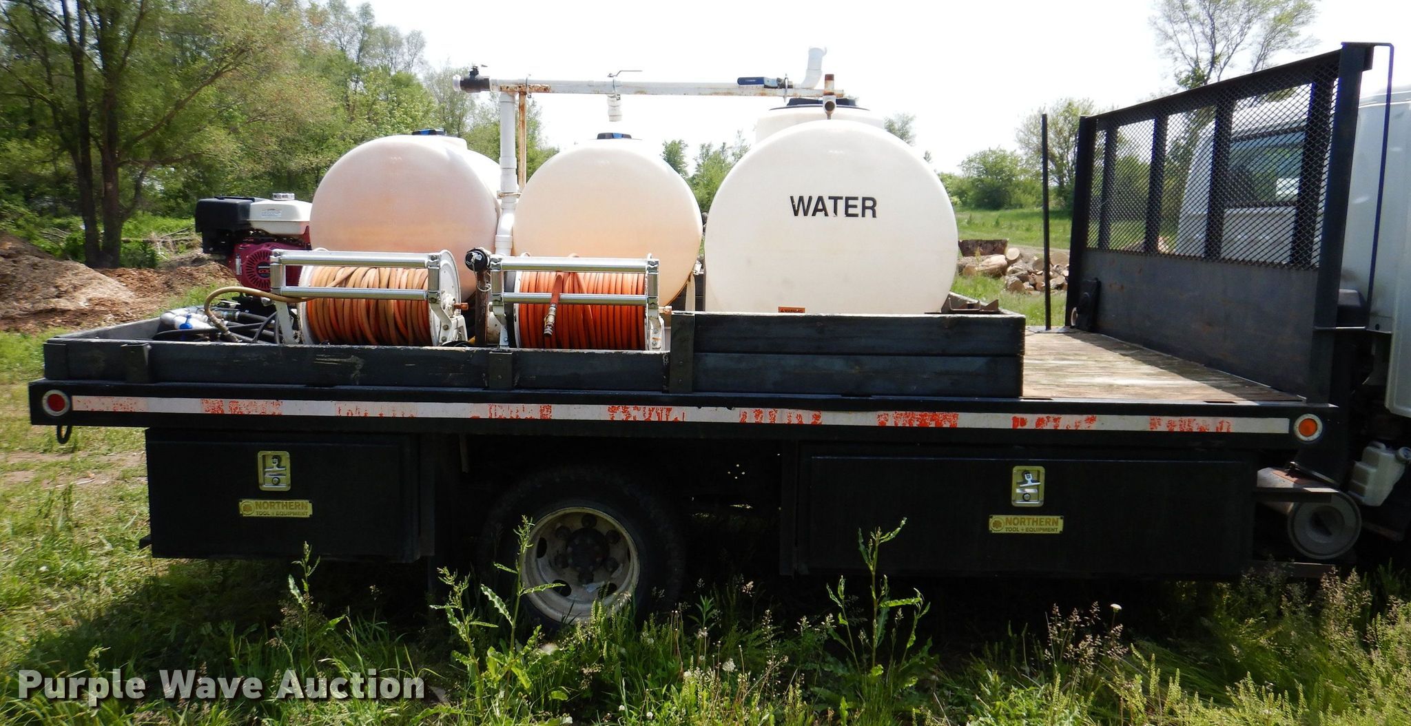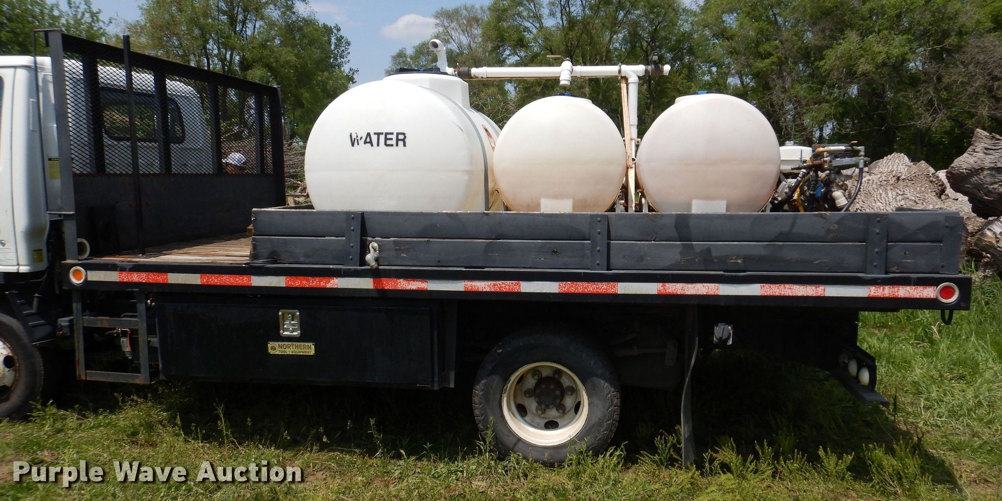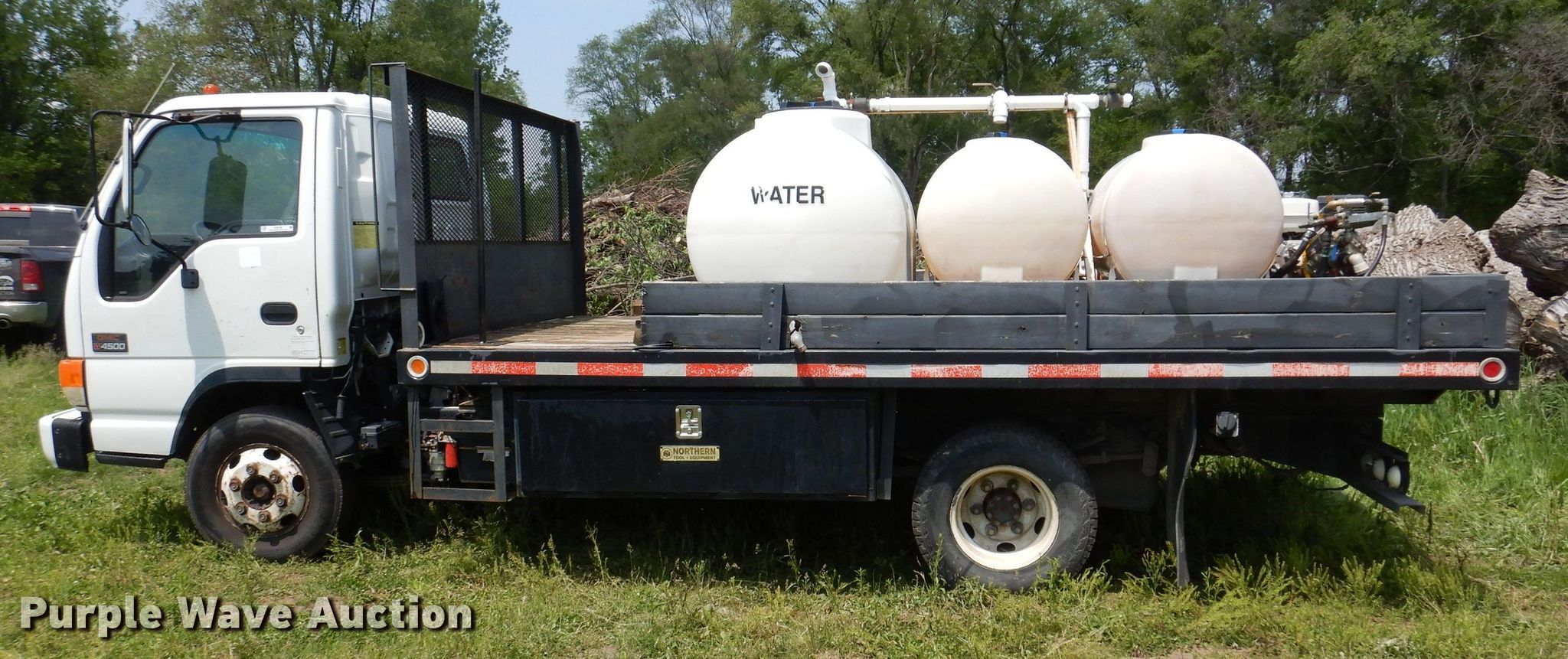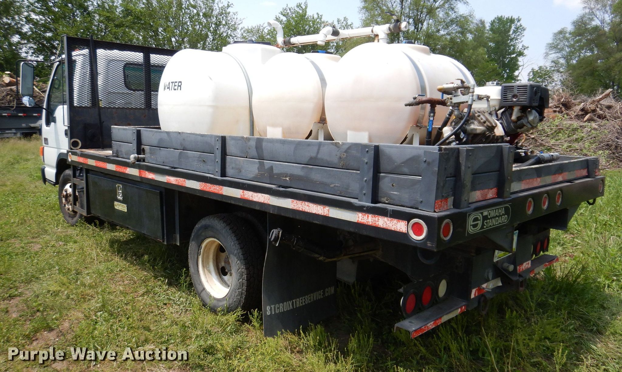 2005 GMC W4500 flatbed truck. Miles: 154,821 on odometer, VIN: J8DC4B16X57004067. Engine Isuzu, Displacement: 5.2L, Cylinders: 4, Fuel type: Diesel. Transmission Automatic. Chassis Axles: Single, Suspension: Spring, Brakes: Hydraulic. Interior AC, Heat, Cruise control, Brake controller. Features Flatbed Omaha, 14' 5" L x 96" W, Removable sides, (3) poly tanks (2) capacity: 110 gallons, Capacity: 300 gallons, Pump Honda GX390, Cylinders: 1, Fuel type: Gas, (2) hose reels. Tires Size: LT215/85R16. Notes. Iowa title. Title distribution may be delayed up to 14 days from verification of funds. Arborcare by Kluver LLC. 13580 Northwest 102nd Avenue. Granger, IA 50109