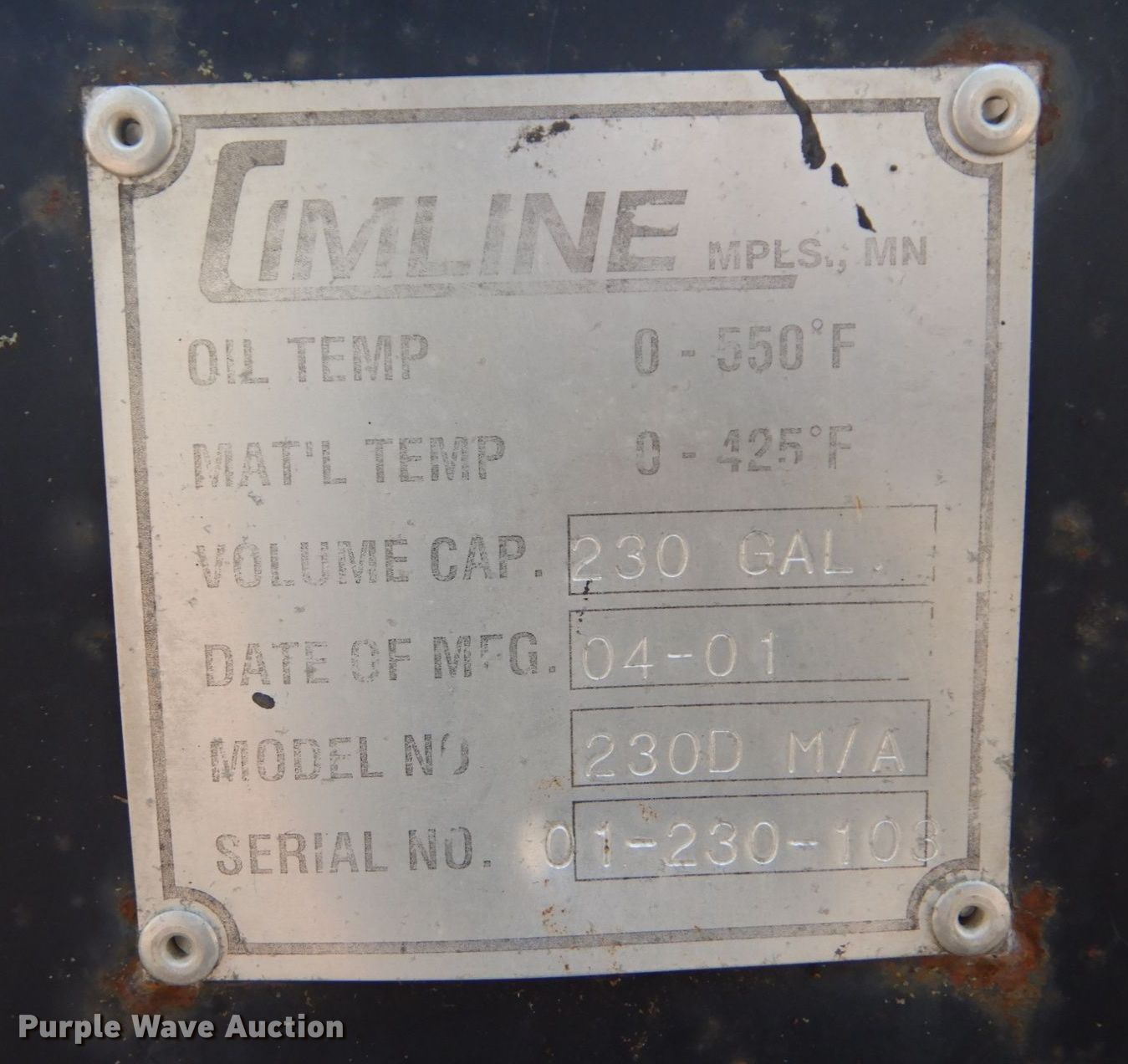 Purple Wave is selling a used Pot Hole Patcher in Minnesota. This item is a Cimline Magma 230D M/A melter applicator with the following: Hours: 470 on meter, Serial: 01-230-103