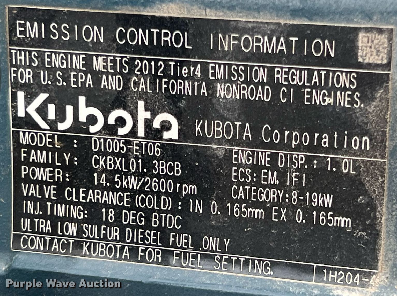 Bomag BMP8500 trench compactor. Hours: 1,020 on meter. Engine Kubota, Cylinders: 3, Fuel type: Diesel. Transmission Hydrostatic. Features Drum: Padfoot, Vibratory system: Double, Front drum Width: 34", Diameter: 20", Rear drum, Drum scrapers: Front, Rear. Arco Excavation & Paving. 10287 E Hwy 72. Bentonville, AR 72712