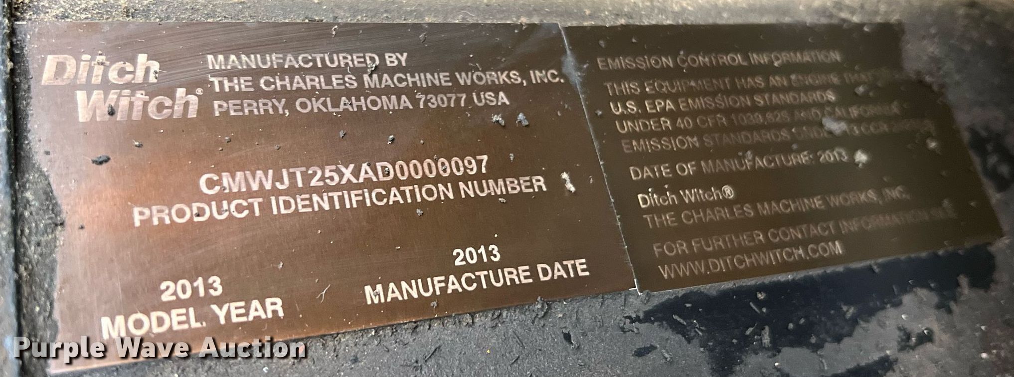 Purple Wave is selling a used Directional Boring Unit in Missouri. This item is a 2013 Ditch Witch JT25 directional boring unit with the following: Hours: 2,339 on meter, Serial: CMWJT25XAD000097