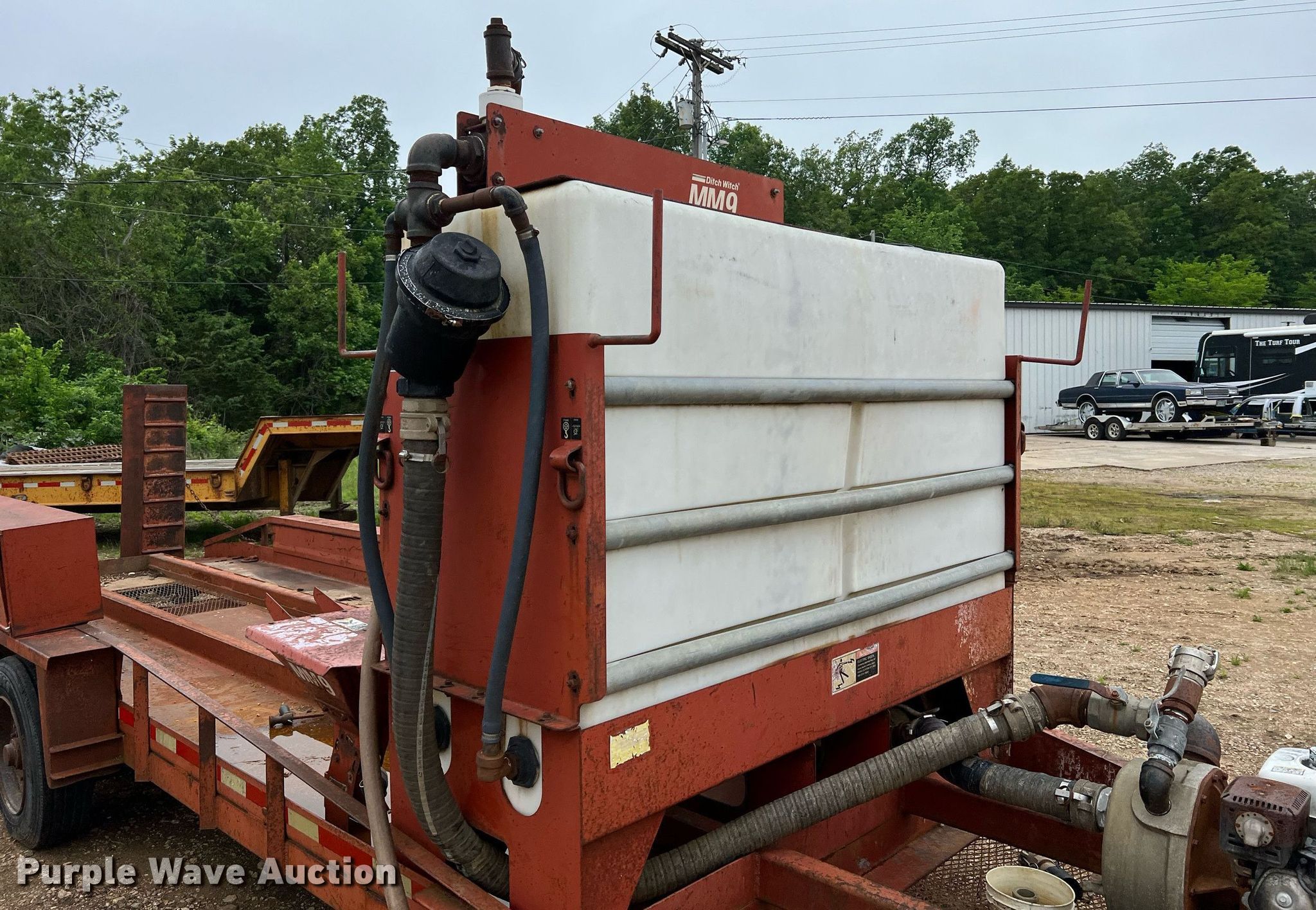 1999 Belshe T-18 equipment trailer. VIN: 16JF02036XL1033353. Dimensions Overall: 30' L x 102" W, Deck: 20' L x 82" W, Tail length: 3', Ramps: Manual Length: 5'. Features Deck type: Steel, Ditch Witch MM9 fluid mixing system Honda GX270 gas engine, 500 gallon poly tank. Chassis Hitch: Pintle, Landing gear: Single, Suspension: Spring, Brakes: Electric, Axles: Triple, GVWR: 24,000 lbs, GAWR: 21,000 lbs. Tires Steel wheels, Size: 215/75R17.5. Pursuant to Missouri law, Purple Wave will not be collecting sales taxes on any of the purchases made in this business liquidation auction... Missouri title. Title distribution may be delayed up to 30 days from verification of funds. Ben Turner Contracting Co Retirement Auction - Open inspection June 20 and 21. 110 Turner Parkway. Camdenton, MO 65020