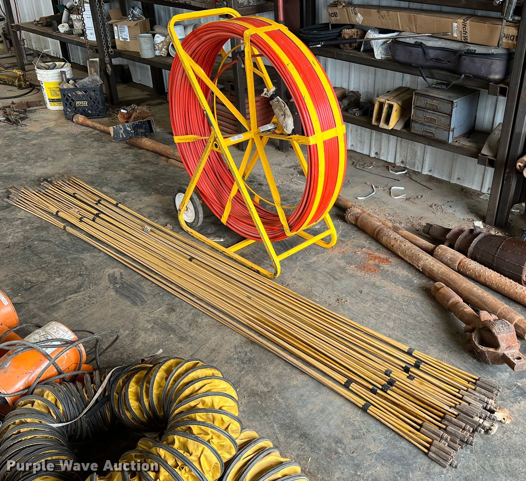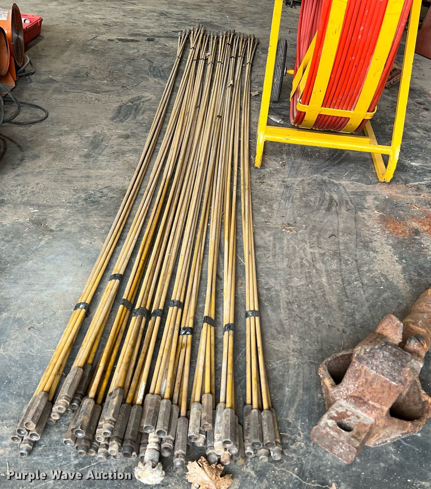 Sewer rodding equipment. Approx. 49 sewer rodding rods 124"L, Big Buddy rodder reel system Approx. 800 linear feet. Pursuant to Missouri law, Purple Wave will not be collecting sales taxes on any of the purchases made in this business liquidation auction. Ben Turner Contracting Co Retirement Auction - Open inspection June 20 and 21. 110 Turner Parkway. Camdenton, MO 65020