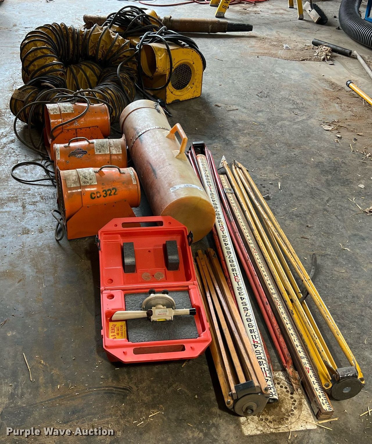 Tools. (3) AirFlow 2330 ventilation blowers, (2) AirFlow ventilation tubes, Meridian l6-20 surveying equipment , (2) Pel-Port ventilation blowers. Pursuant to Missouri law, Purple Wave will not be collecting sales taxes on any of the purchases made in this business liquidation auction. Ben Turner Contracting Co Retirement Auction - Open inspection June 20 and 21. 110 Turner Parkway. Camdenton, MO 65020