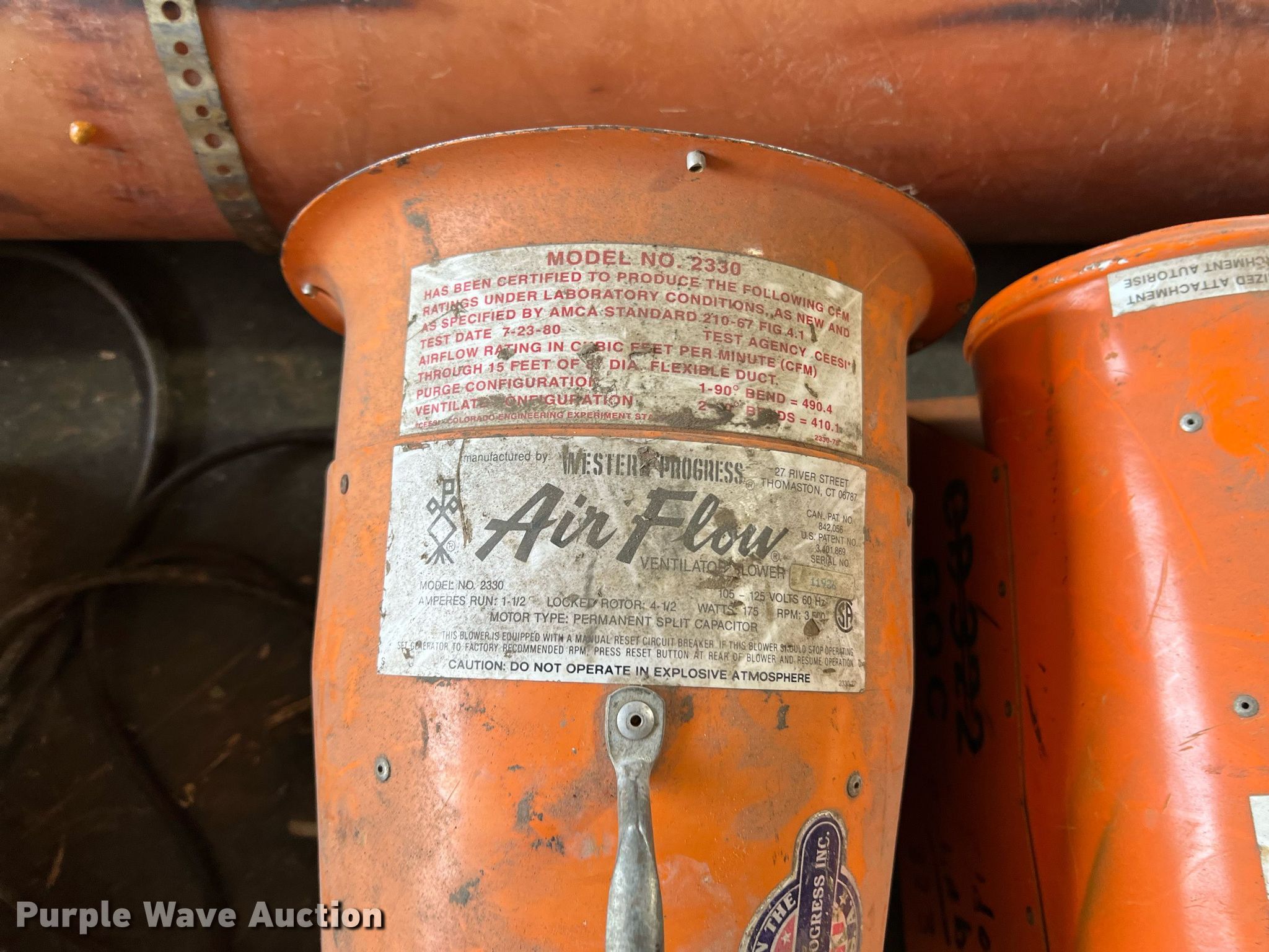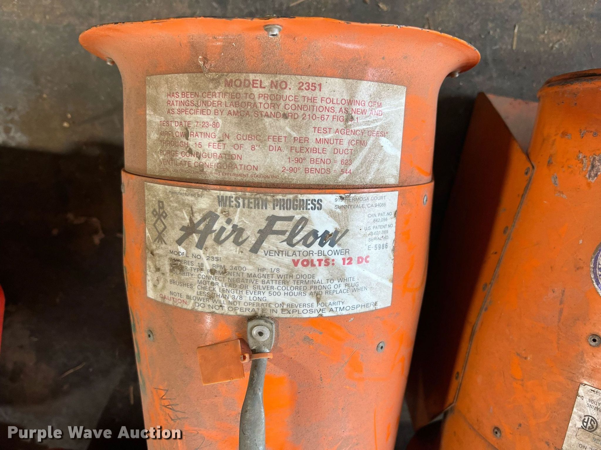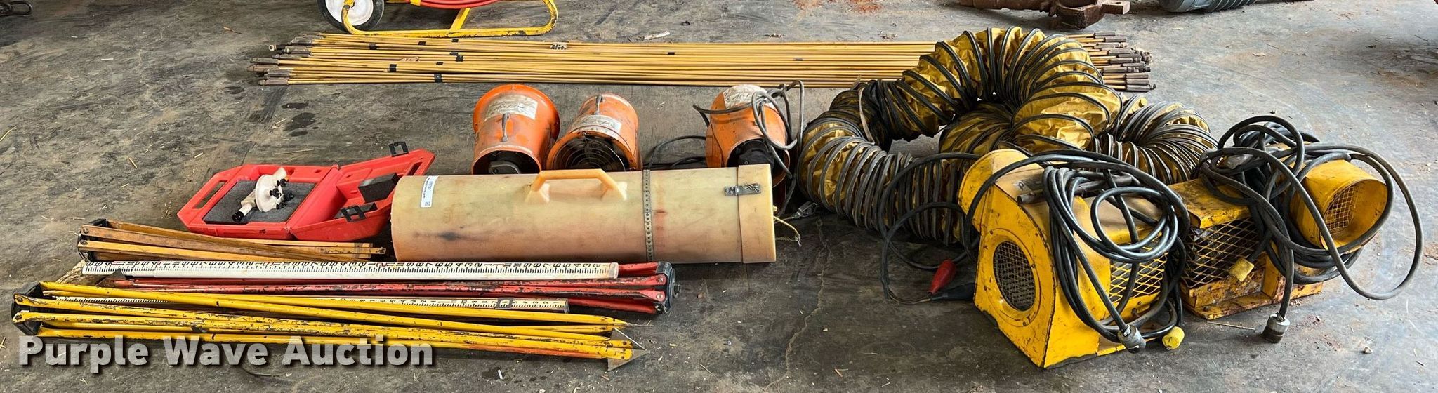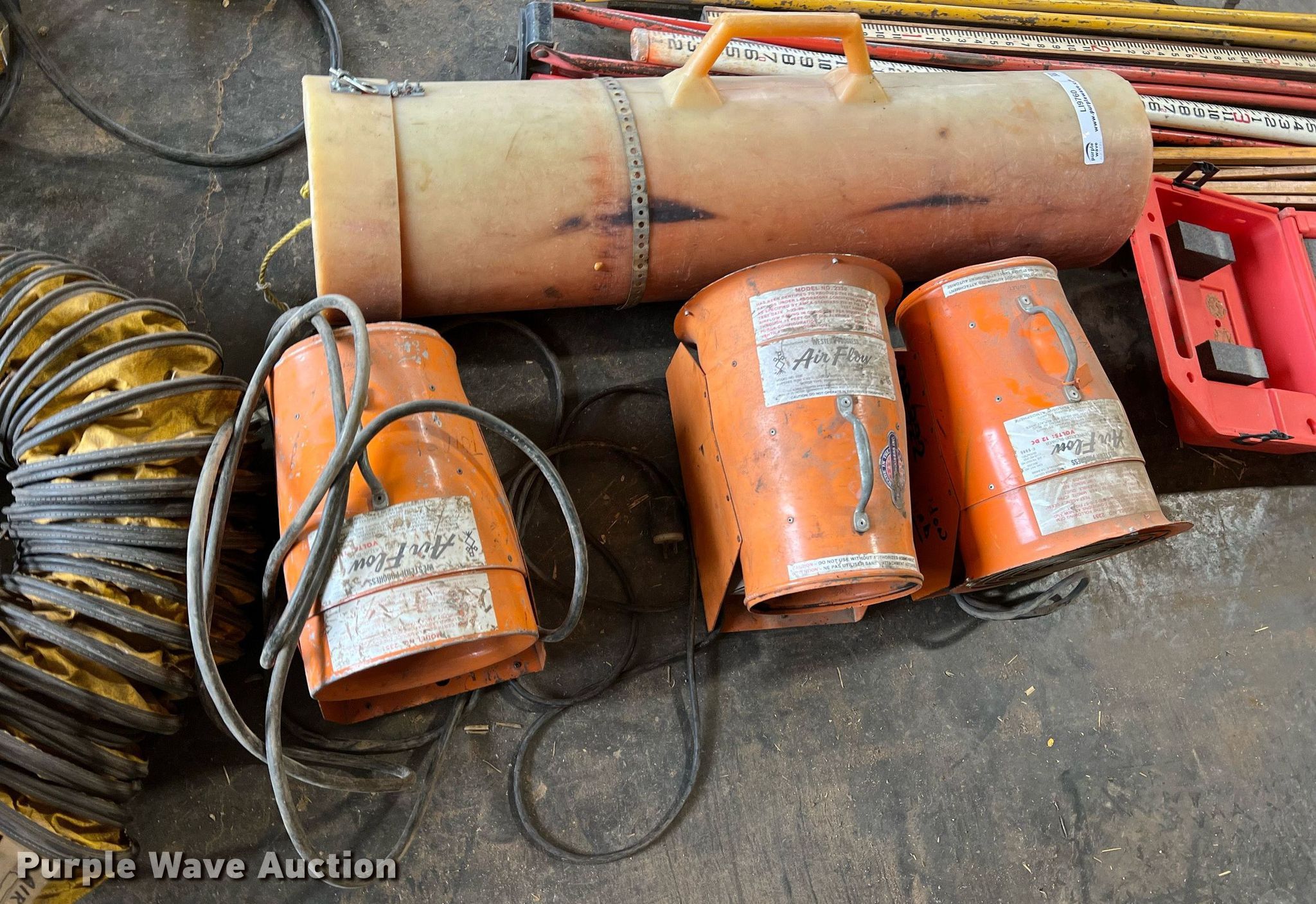 Purple Wave is selling a used Tools in Missouri. This item is a Tools with the following: (3) AirFlow 2330 ventilation blowers, (2) AirFlow ventilation tubes, Meridian l6-20 surveying equipment, (2) Pel-Port ventilation blowers