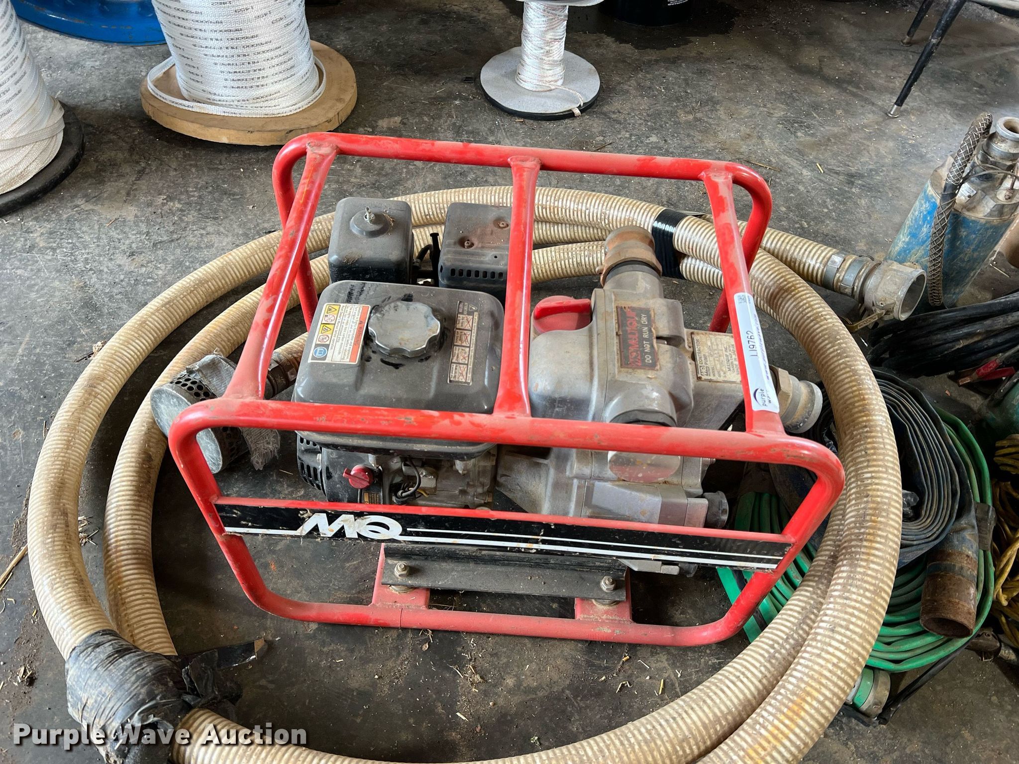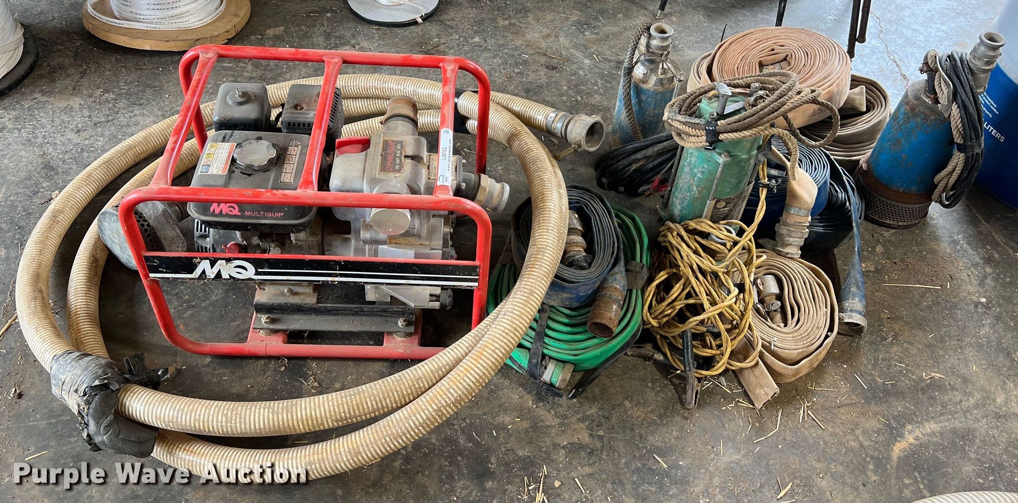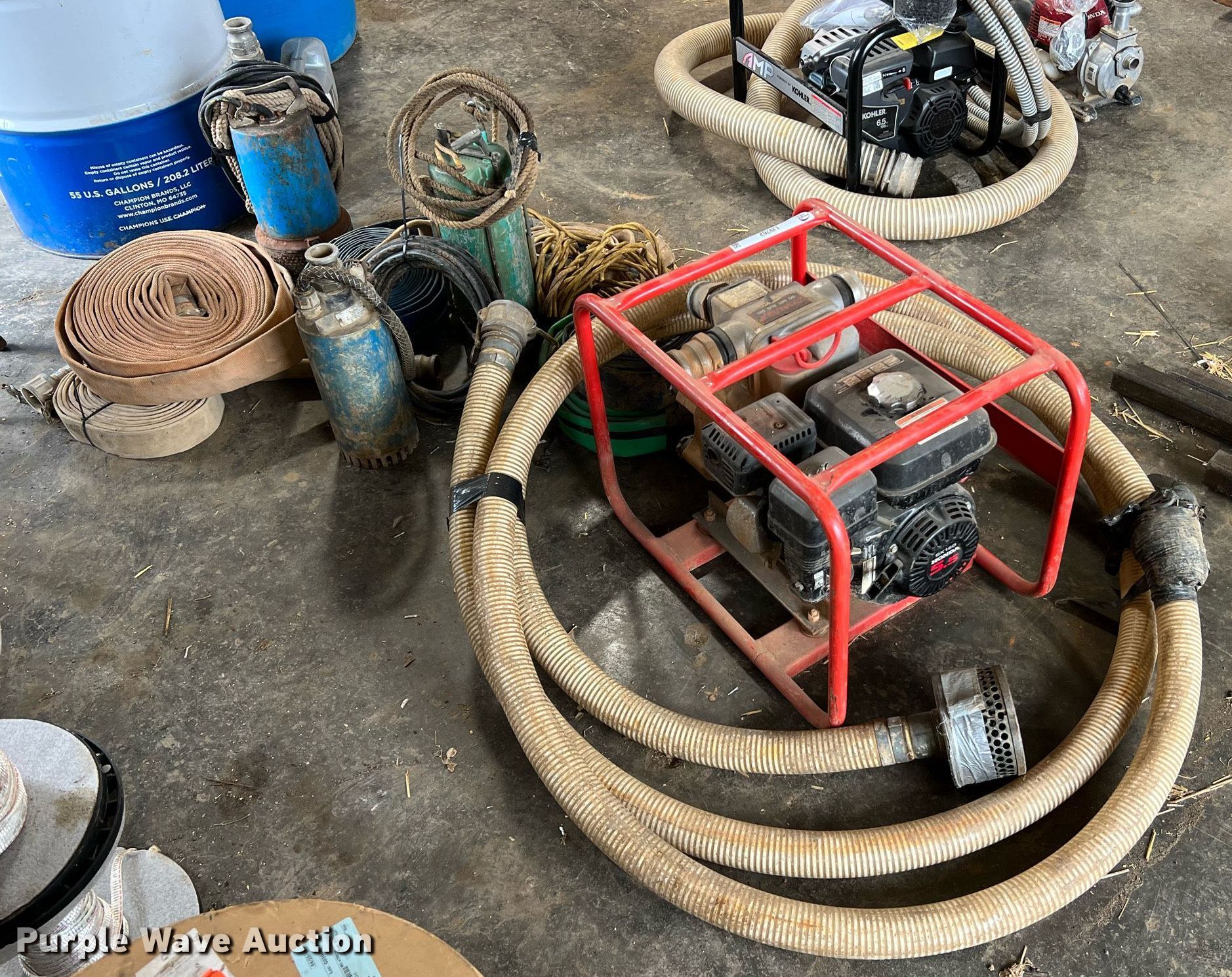 Purple Wave is selling a used Pump in Missouri. This item is a (4) pumps with the following: Multiquip QP-2TH, Honda GX160 gas engine, 5.5 HP, 2" diameter inlet/discharge, LB2-750, 110V, Head max: 60', O SRA11/2-ET, 12V, Western Progress 2895, 12V, 45 amps, (7) hoses, Discharge hose