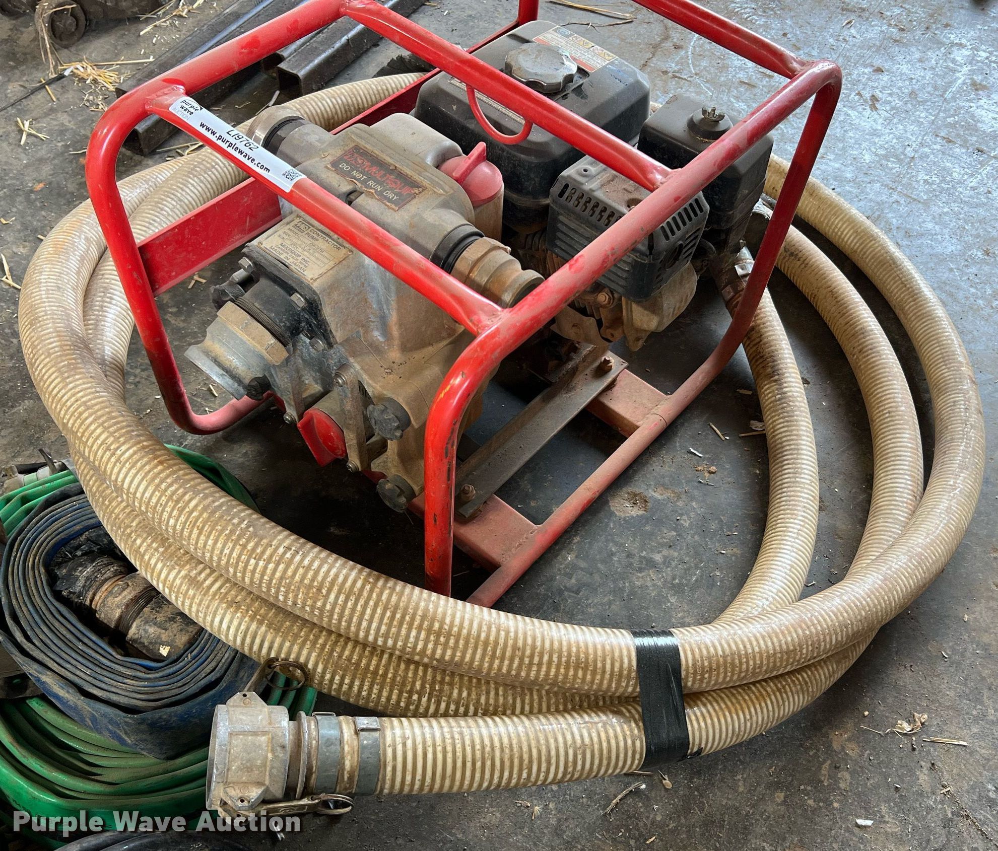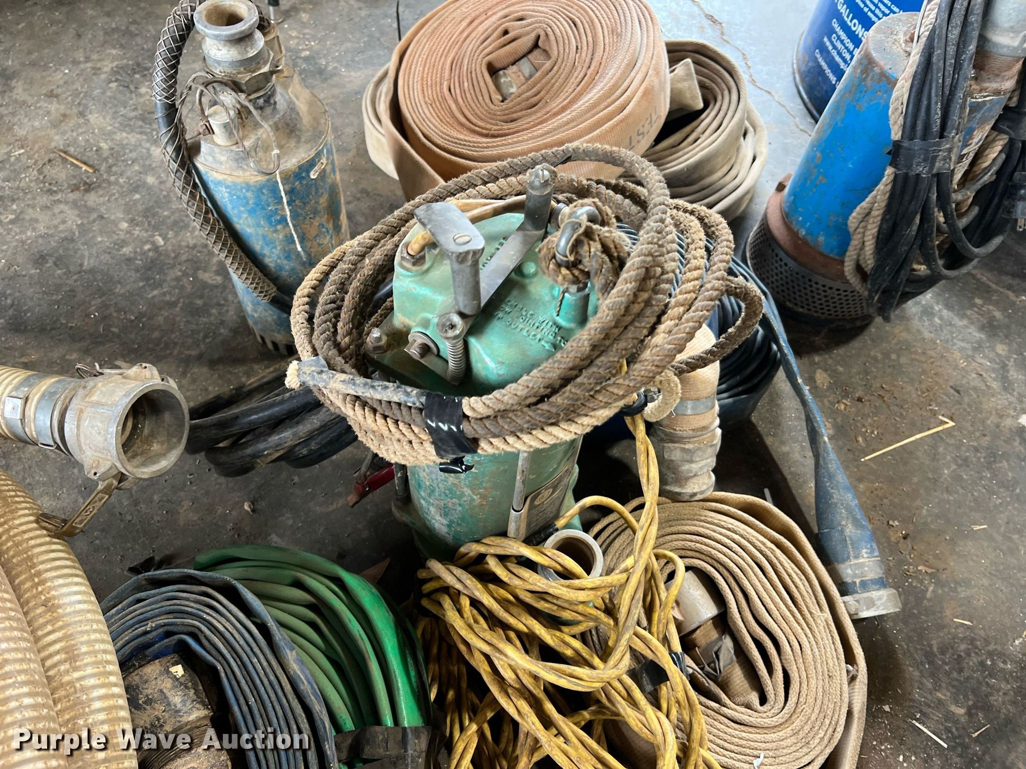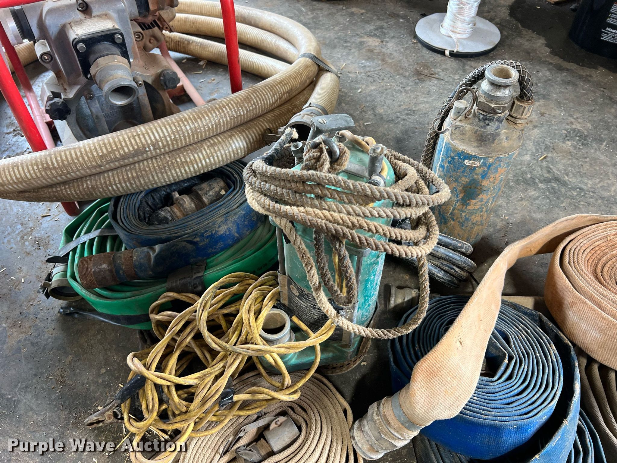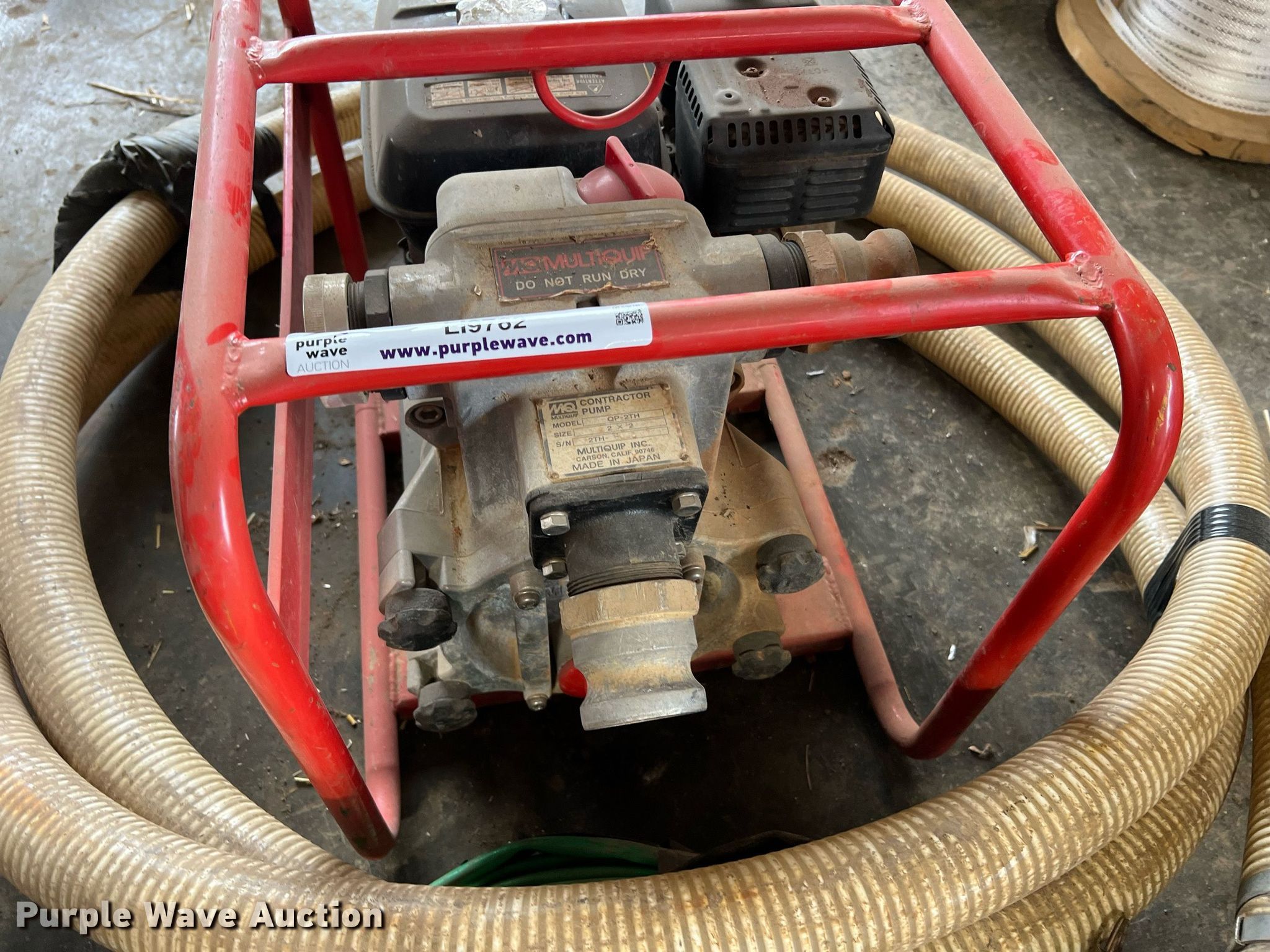 Purple Wave is selling a used Pump in Missouri. This item is a (4) pumps with the following: Multiquip QP-2TH, Honda GX160 gas engine, 5.5 HP, 2" diameter inlet/discharge, LB2-750, 110V, Head max: 60', O SRA11/2-ET, 12V, Western Progress 2895, 12V, 45 amps, (7) hoses, Discharge hose