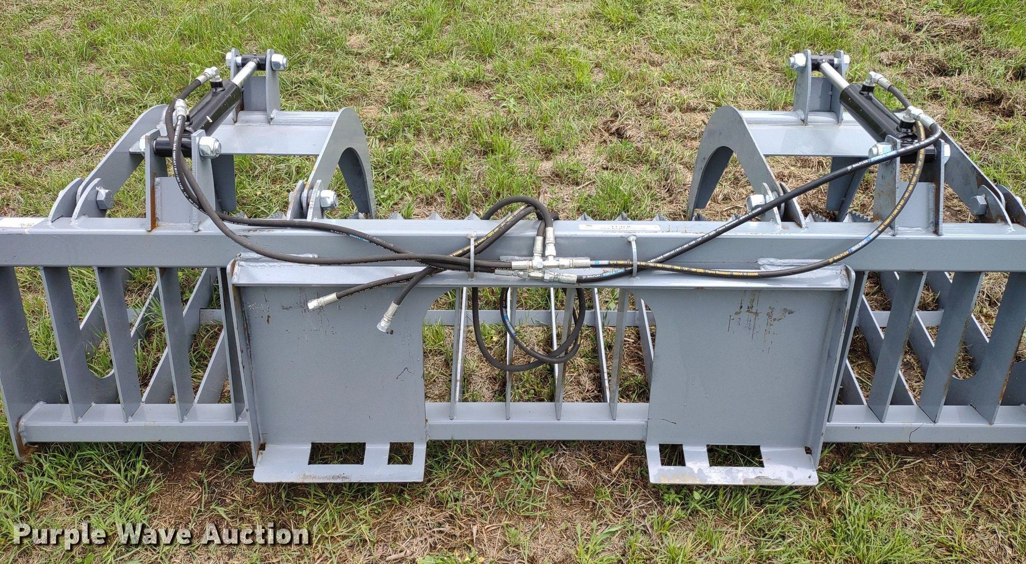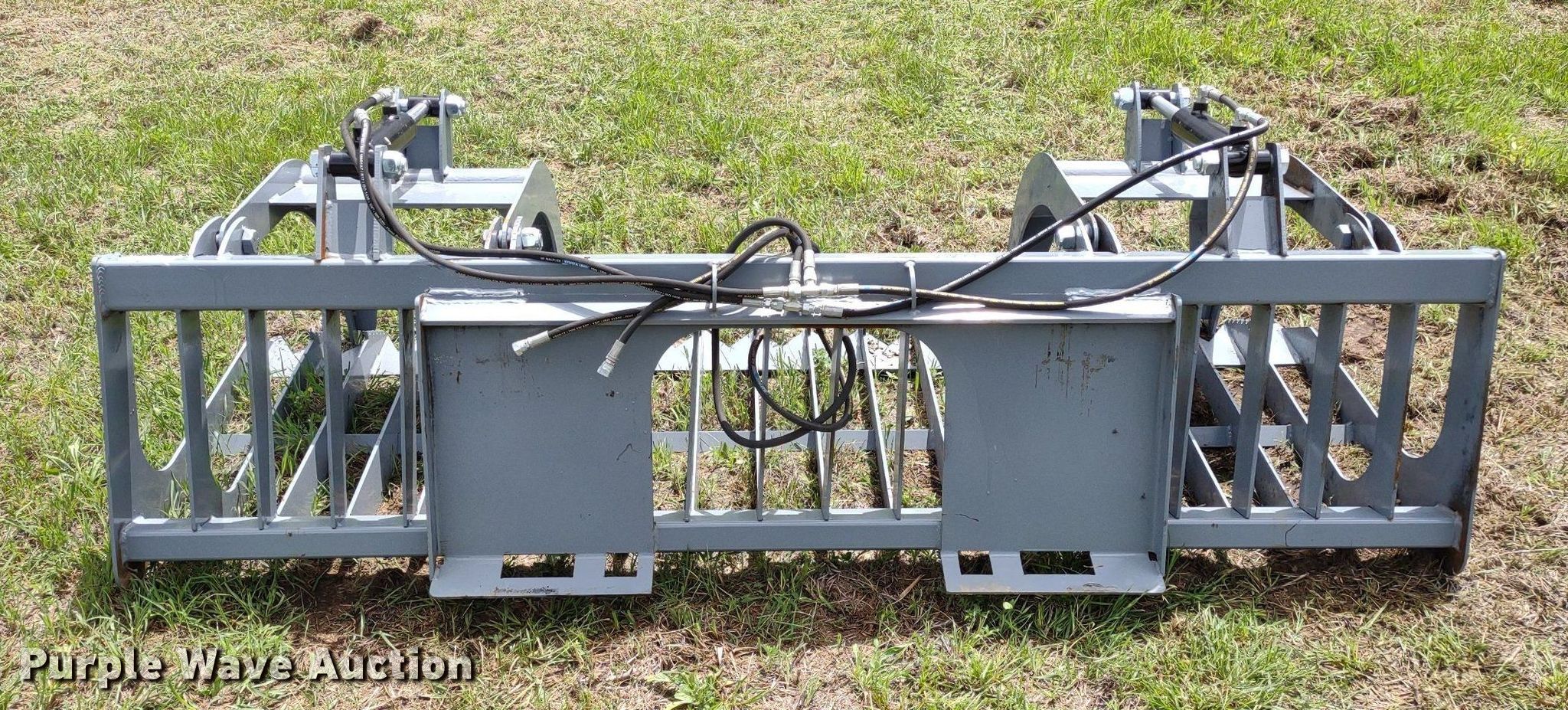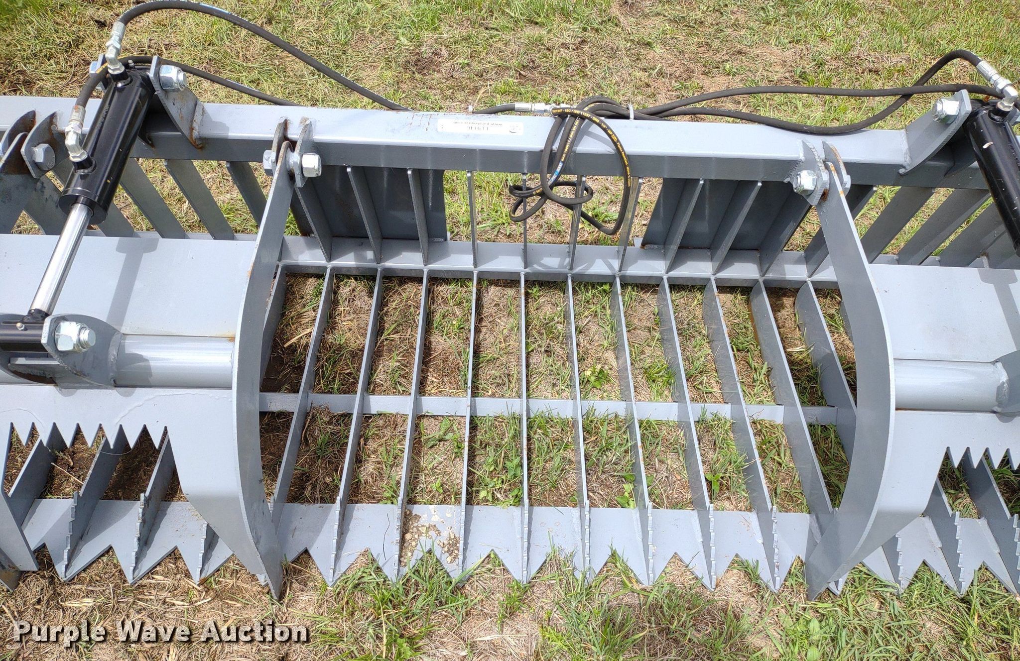 Purple Wave is selling a used Skid Steer Attach. in Kansas. This item is a 84"W skid steer grapple bucket with the following: Unused