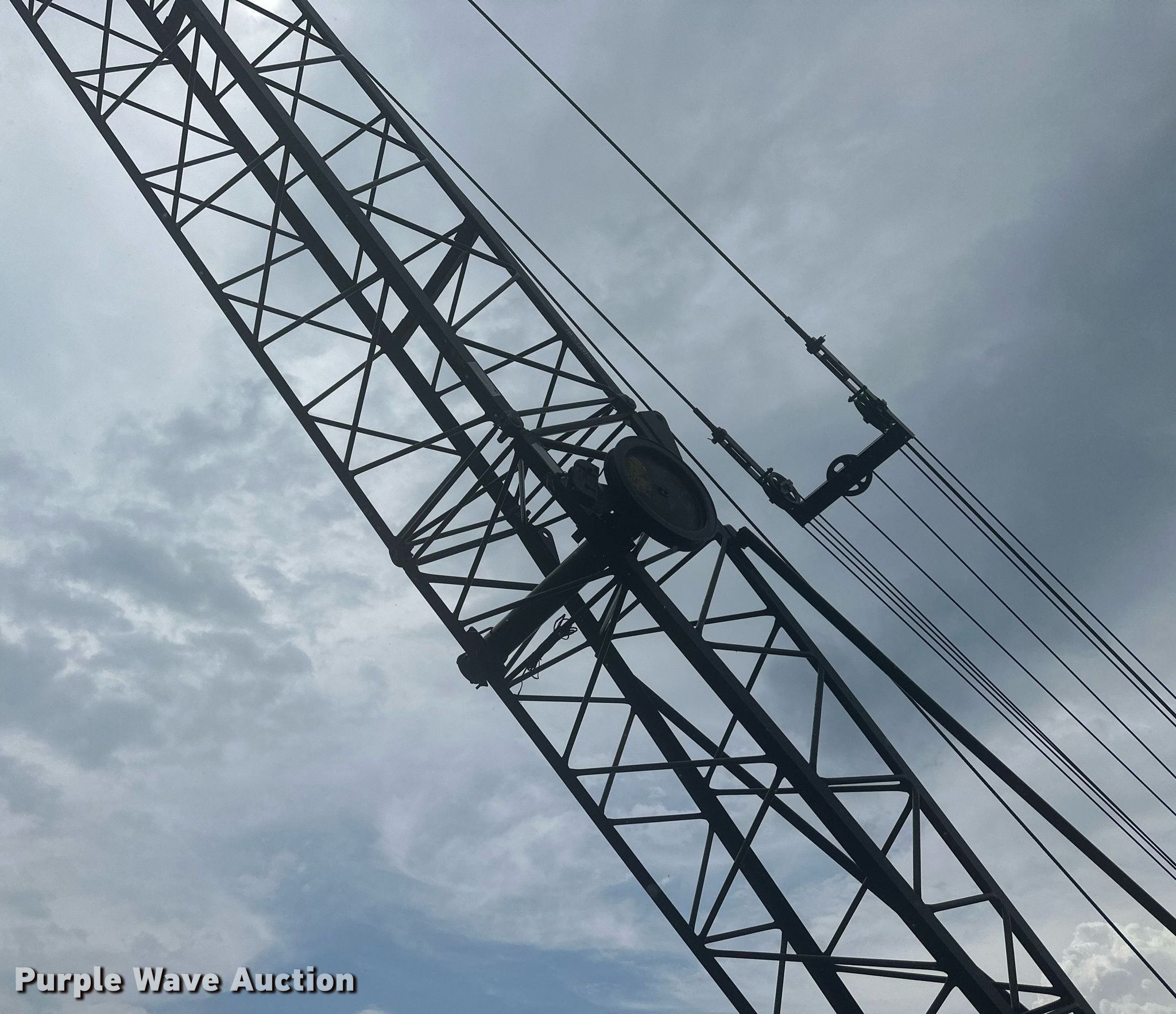 1973 American 5299 crane. Hours: 3,975 on meter, Serial: GS17304. Engine Detroit Diesel, Cylinders: 6, Fuel type: Diesel. Transmission Direct-drive Torque converter. Chassis Propulsion: Mechanical, Controls: Air actuated. Operators station Enclosed cab, Crane controls: Stick. Features Boom Lattice, Maximum boom length: 70' Sections: 1, Maximum lift capacity: 100,000 lbs, Boom controls In-cab, Winches: 3, Removable counter weight. Tracks Width: 36", Extendable tracks. Notes Boom issues, will not swing, Hour meter replaced at approx. 7,571 hours. Critchfield Crane Incorporated. Stanberry, MO 64489