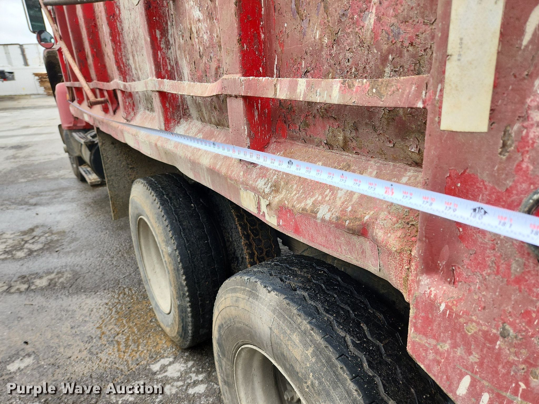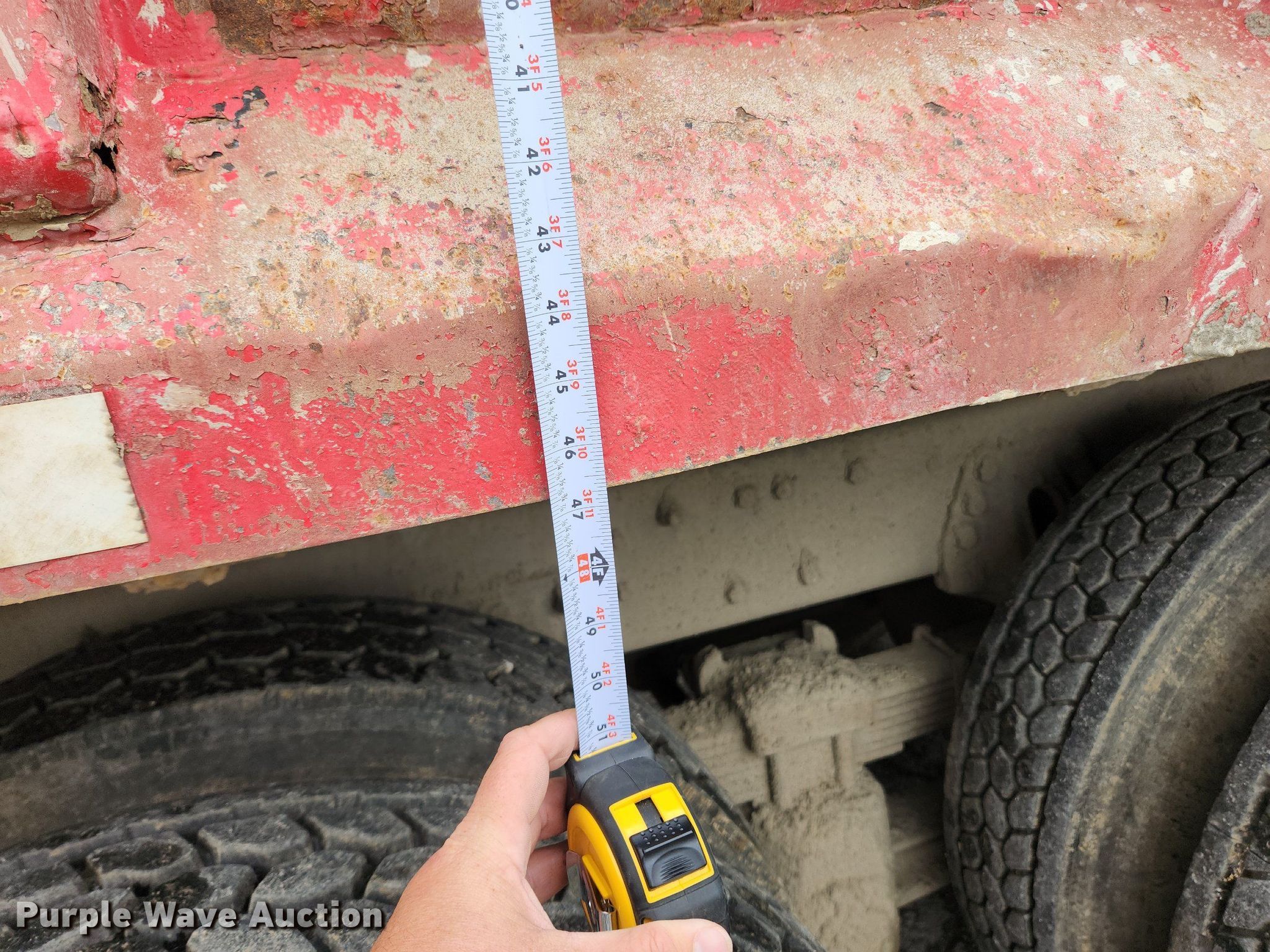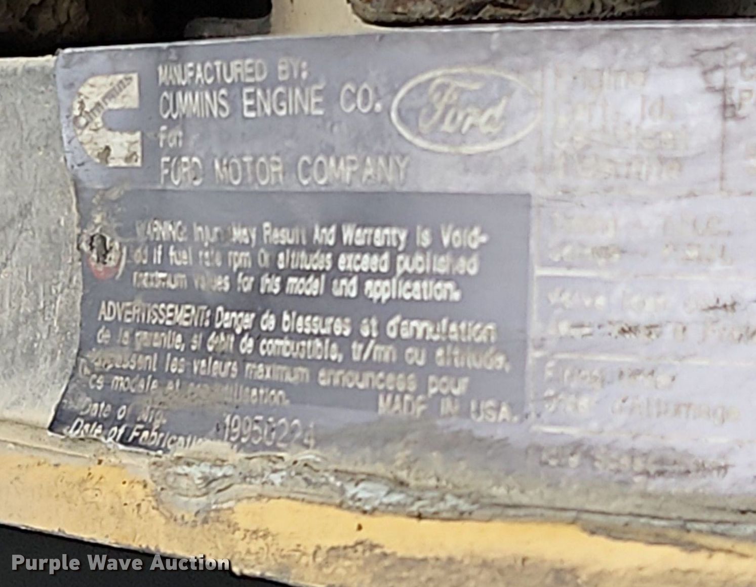 1995 Ford LNT8000 dump truck. Miles: 245,339 on odometer, VIN: 1FDYW82E8SVA60330, Unit #: D215. Engine Cummins C Series, Displacement: 8.3L, Cylinders: 6, Fuel type: Diesel. Transmission Eaton Fuller Roadranger RT-6613, Manual, Speed: 13. Chassis Axles: Tandem, Differential lock: Inter-axle, Suspension: Spring over walking beam, Brakes: Air, PTO. Interior AC, Heat. Features Dump bed 16' L x 96" W, Side height: 46", Side board height: 12", Bed type: Steel, Roll tarp, Ram: Single , End gate: Air operated. Tires Size: 11R22.5. Notes Possible air leak, Non-operational AC, compressor belt missing, Rust damage. Missouri title. Title distribution may be delayed up to 14 days from verification of funds. M&H Concrete Contractors Inc.. St. Peters, MO 63376