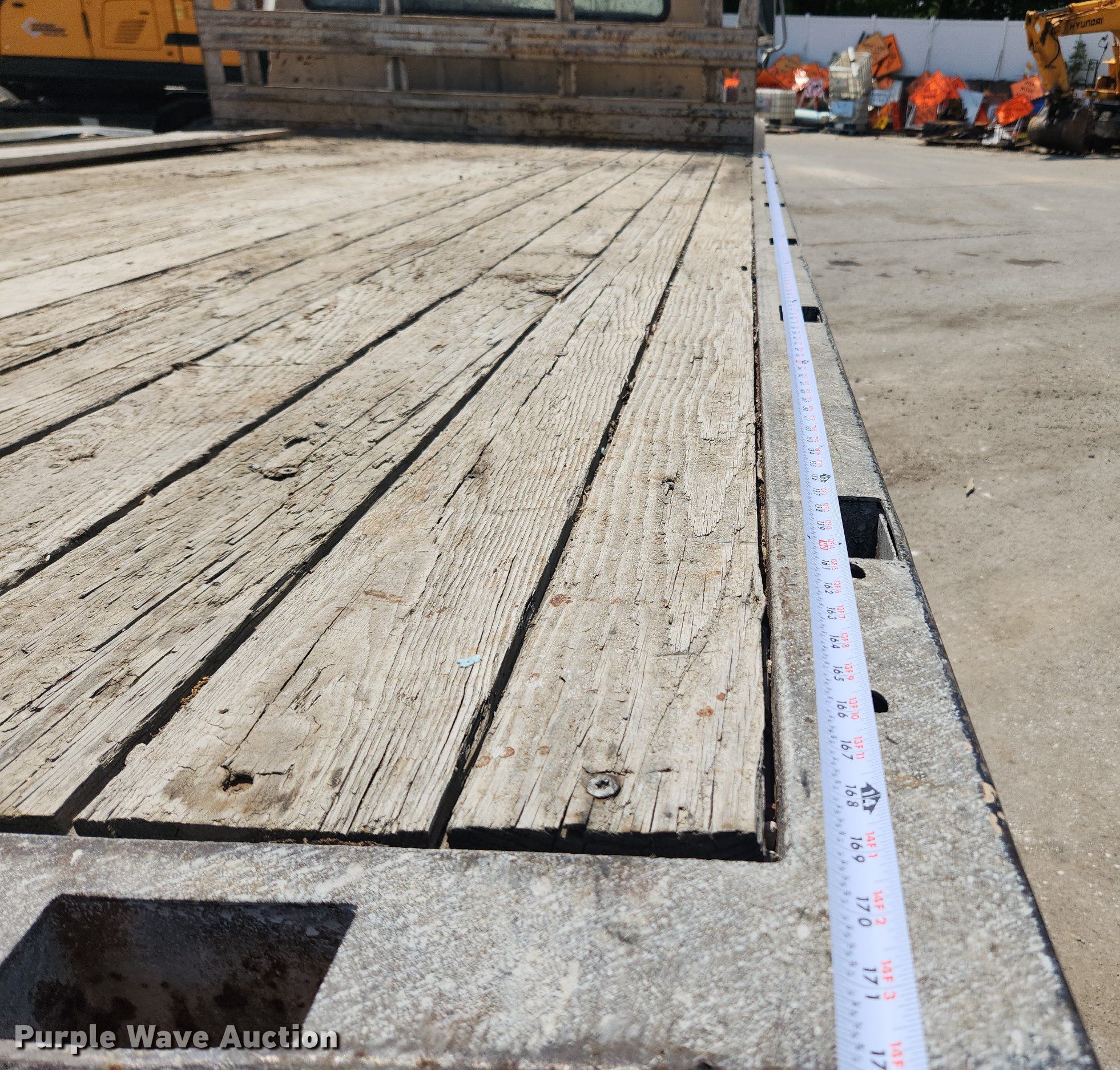 1992 Ford F700 flatbed truck. Miles: 102,266 on odometer, VIN: 1FDNK74P5NVA29757, Unit #: T59. Engine Ford, Displacement: 6.6L, Cylinders: 6, Fuel type: Diesel. Transmission Automatic. Chassis Axles: Single, Suspension: Spring, Brakes: Hydraulic, GVWR: 22,000 lbs, Wheelbase: 171". Interior AC, Heat. Features Flatbed Midwest, 14' 4" L x 96" W. Tires Front: 10R22.5, Rear: 235/75R22.5. Missouri title. Title distribution may be delayed up to 14 days from verification of funds. M&H Concrete Contractors Inc.. St. Peters, MO 63376