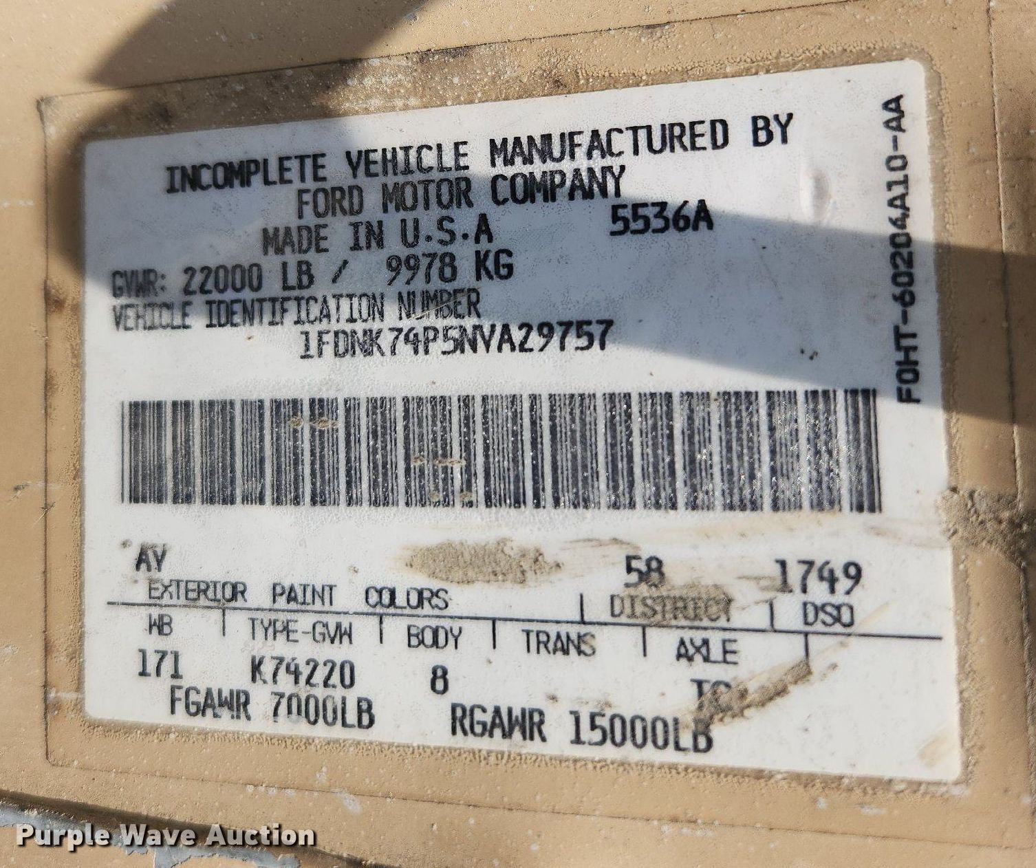 - VIN: 1FDNK74P5NVA29757