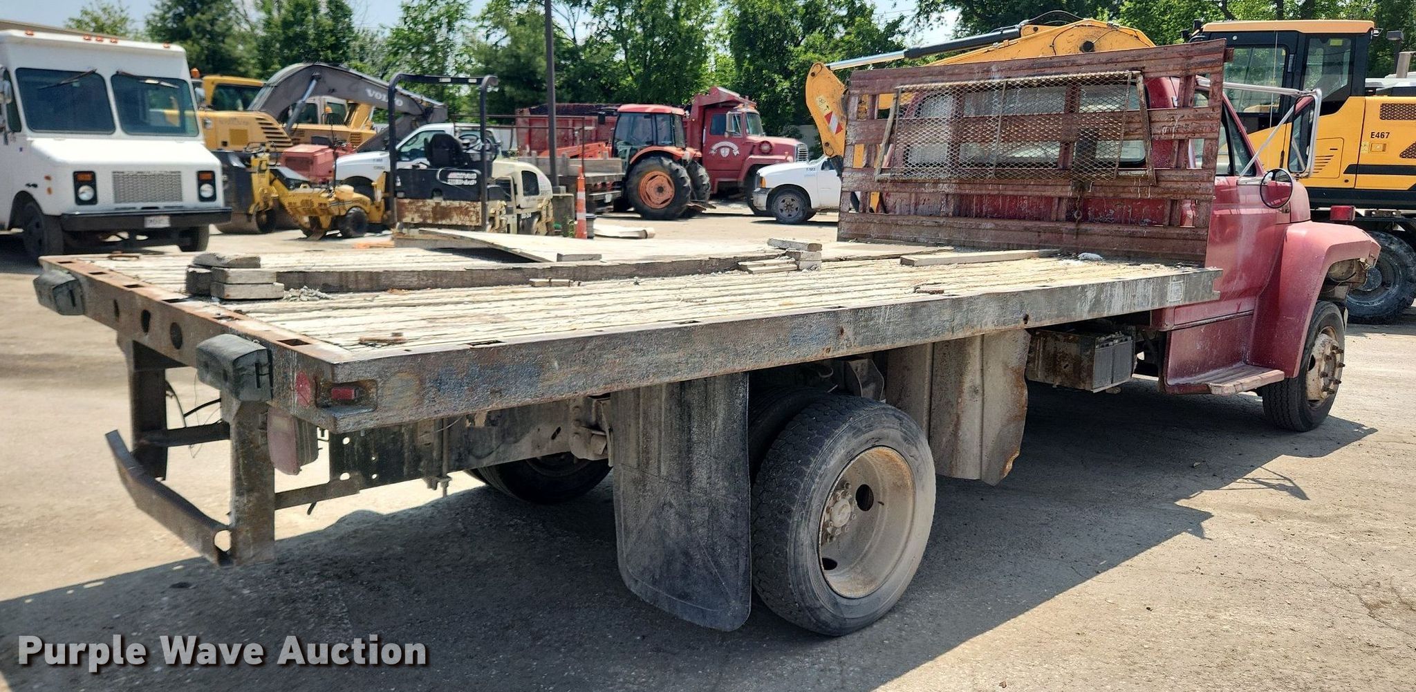 This 1992 Ford F600 flatbed truck will sell to the highest bidder regardless of price.