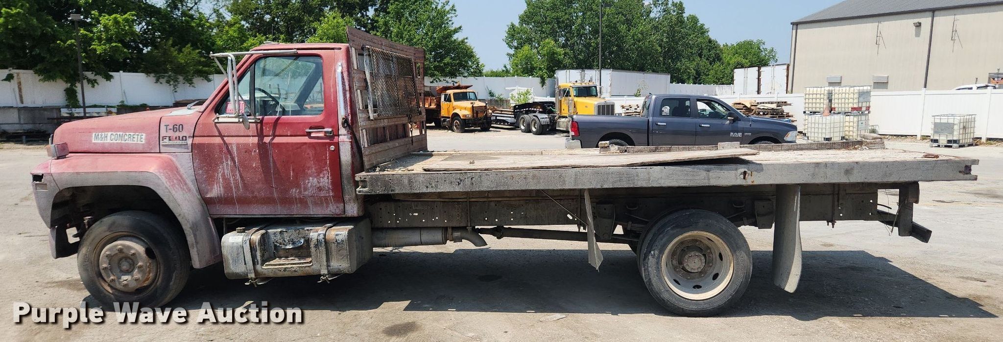 Purple Wave is selling a used Flat Bed Truck in Missouri. This item is a 1992 Ford F600 flatbed truck with the following: Miles: 90,977 on odometer, VIN: 1FDMK64P8NVA14174, Unit #: T60