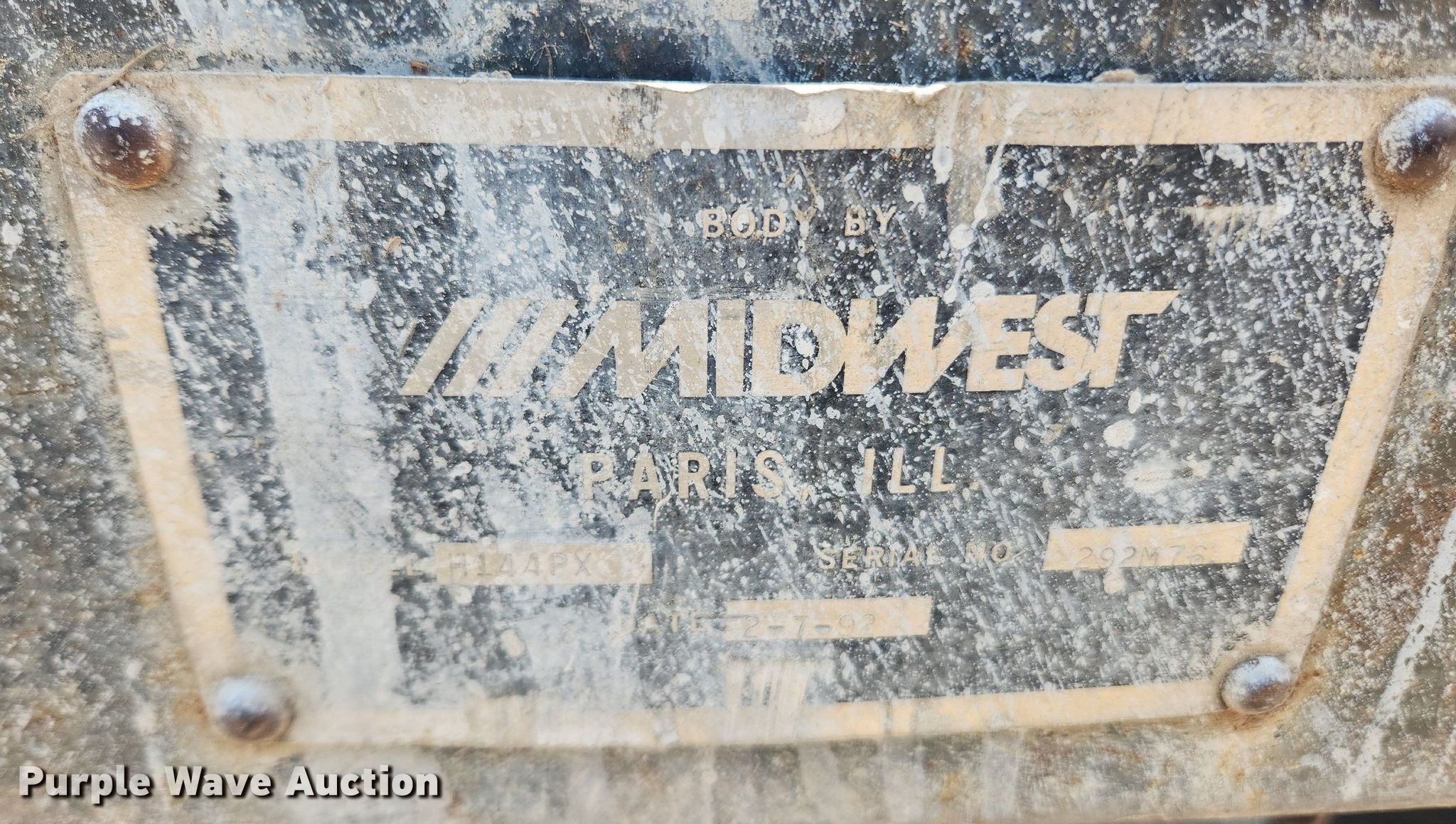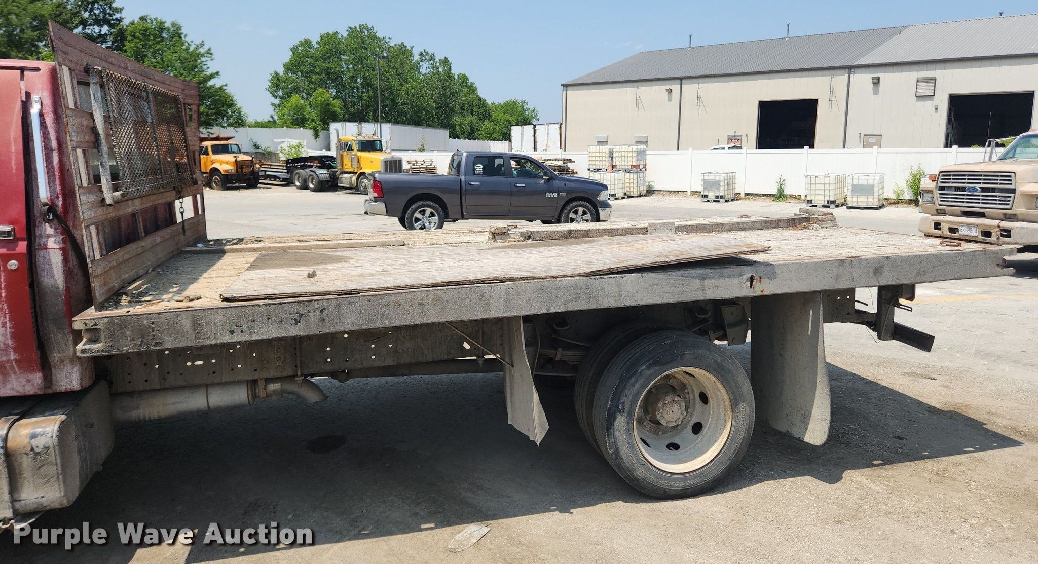 1992 Ford F600 flatbed truck. Miles: 90,977 on odometer, VIN: 1FDMK64P8NVA14174, Unit #: T60. Engine Displacement: 6.6L, Cylinders: 6, Fuel type: Diesel. Transmission Automatic. Chassis Axles: Single, Suspension: Spring, Brakes: Hydraulic, GVWR: 19,000 lbs, Wheelbase: 171". Interior AC, Heat. Features Flatbed Midwest, 14' 4" L x 96" W. Tires Size: 225/70R19.5. Notes Dash warning indicator: Brake, Passenger door glass missing, does not open, Non-operational AC, no belt on compressor. Missouri title. Title distribution may be delayed up to 14 days from verification of funds. M&H Concrete Contractors Inc.. St. Peters, MO 63376
