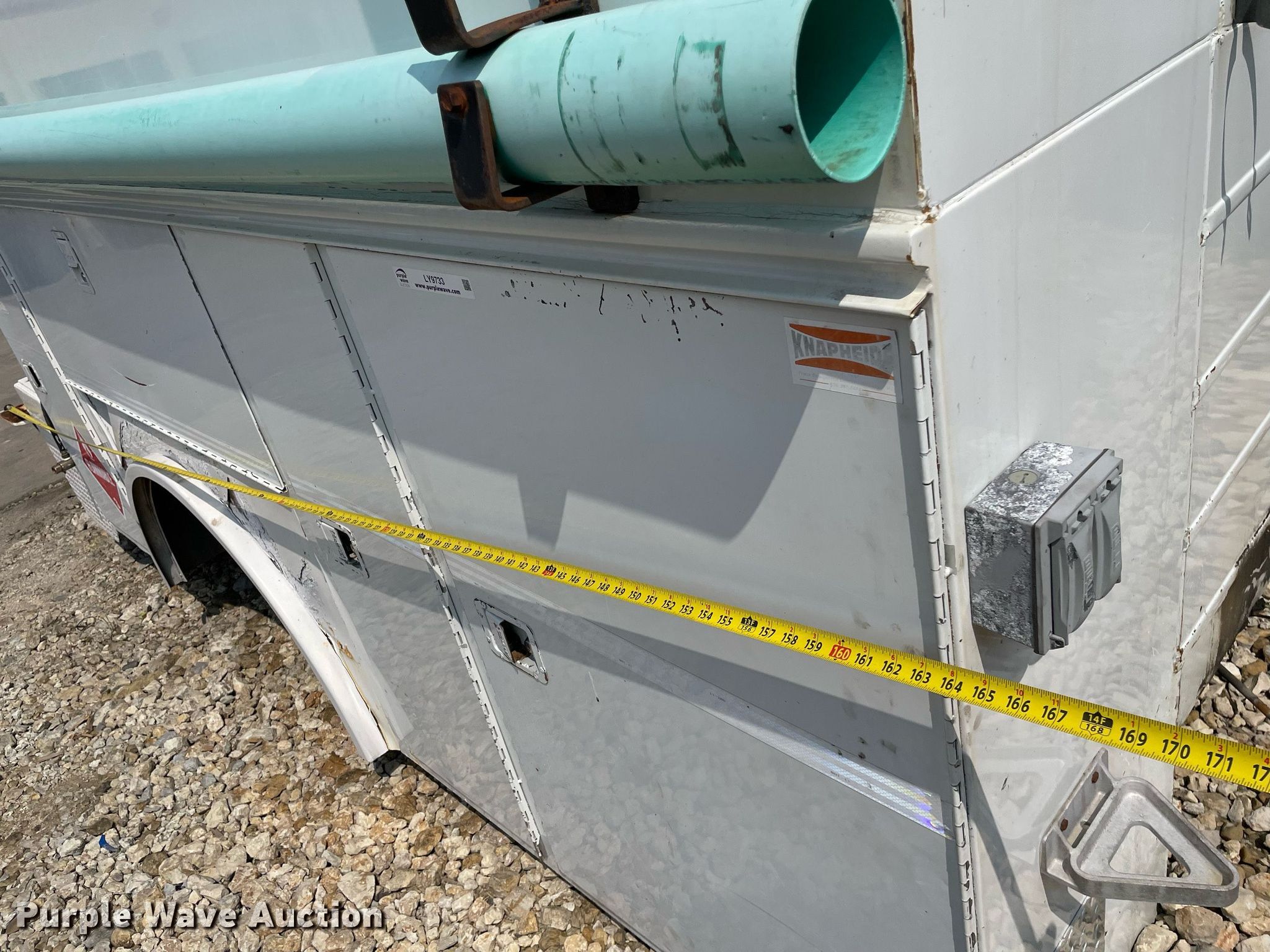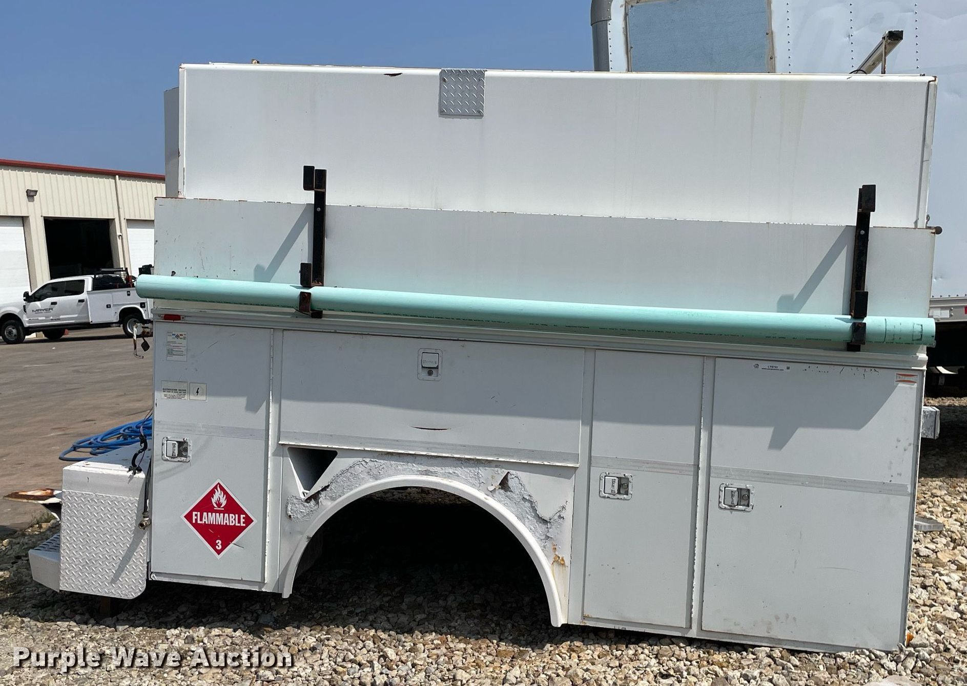 Purple Wave is selling a used Truck Part and Attach. in Kansas. This item is a Knapheid service bed with the following: 14' L x 8' W x 106" H, Unknown operating condition