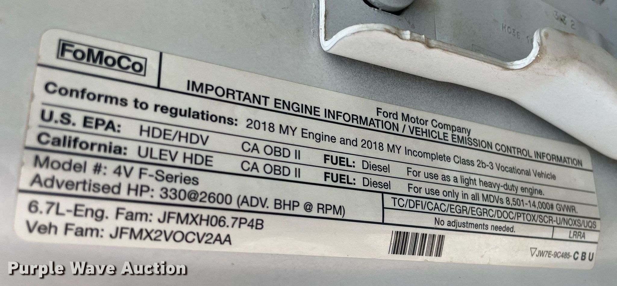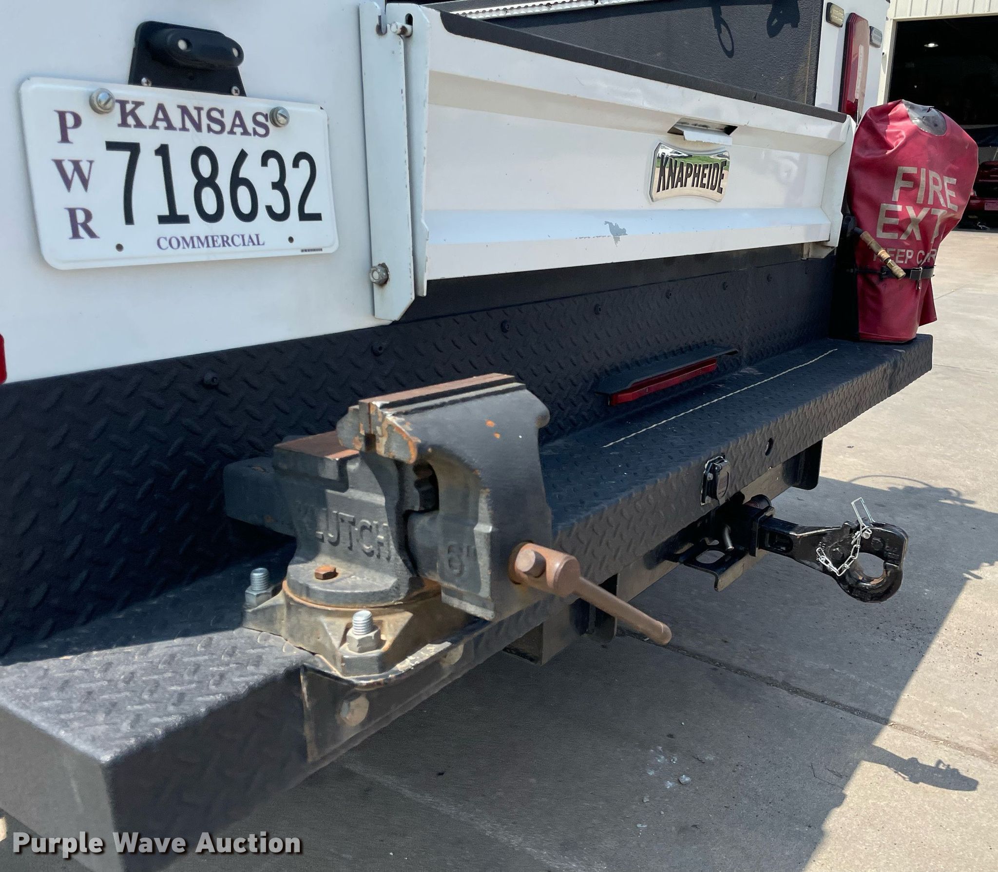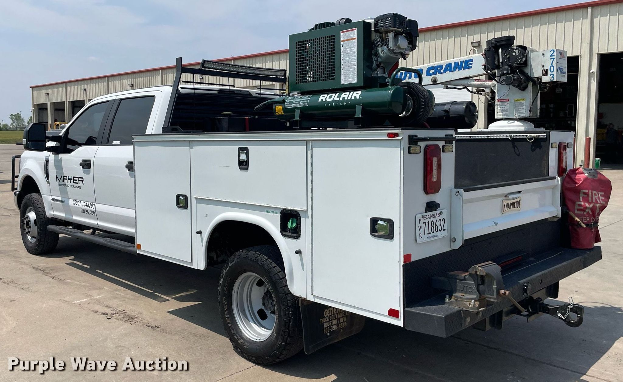 2018 Ford F350 Super Duty Crew Cab utility bed pickup truck. Miles: 135,138 on odometer, VIN: 1FD8W3HT9JEB40176. Engine Displacement: 6.7L V8 OHV, Cylinders: 8, Fuel type: Diesel. Transmission Automatic. Chassis Four wheel drive. Interior AC, Heat, Heated mirrors, Power windows, Power locks, Cruise control, Backup camera. Features Bed Knapheide 6108D54, 9' 8" L x 96" W, Air compressor Rolair MDL6590HK18-0279, Crane Autocrane 2703, Maximum boom length: 14' Maximum lift capacity: 2,700 lbs, Controls: remote, Auxiliary fuel tank Fill Rite pump, Hose reel. Tires Size: 265/70R17. Notes EGR delete. Kansas title. Title distribution may be delayed up to 14 days from verification of funds. Mayer Specialty Services, LLC. Goddard, KS 67052