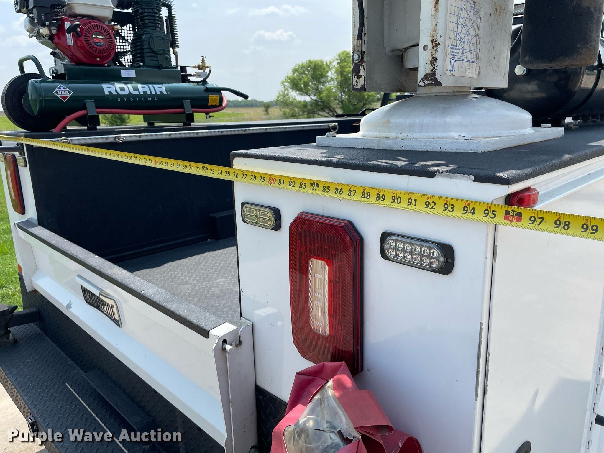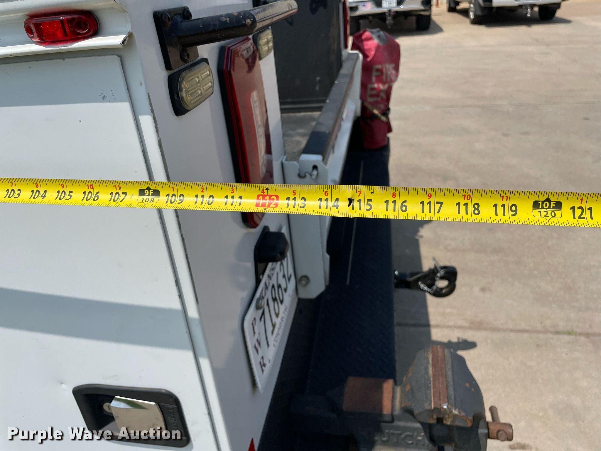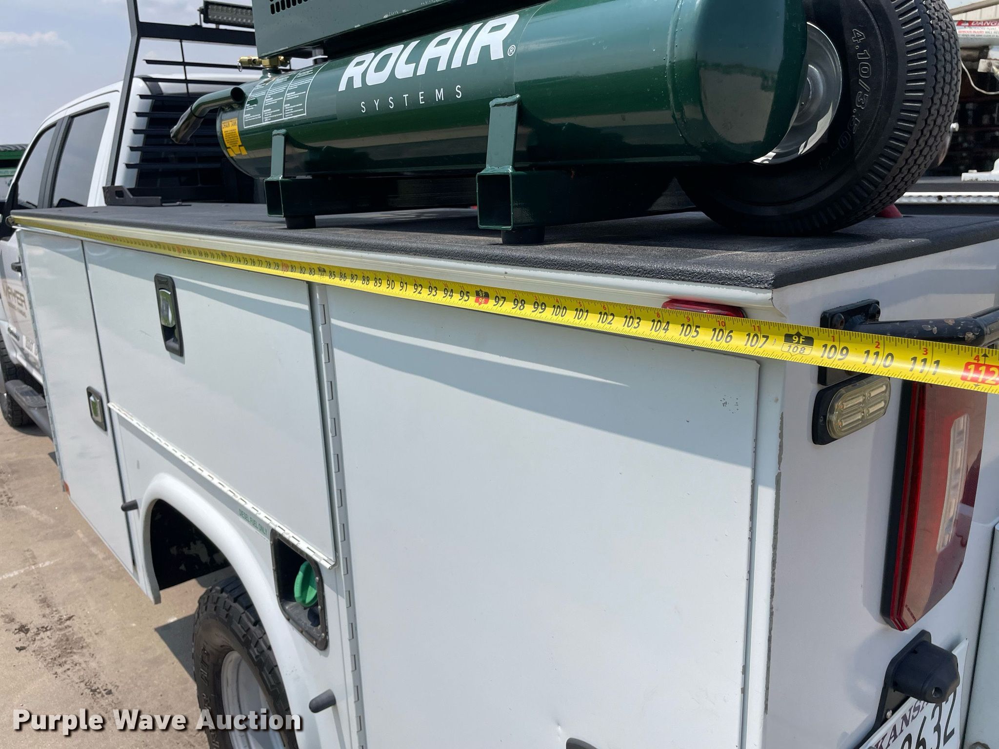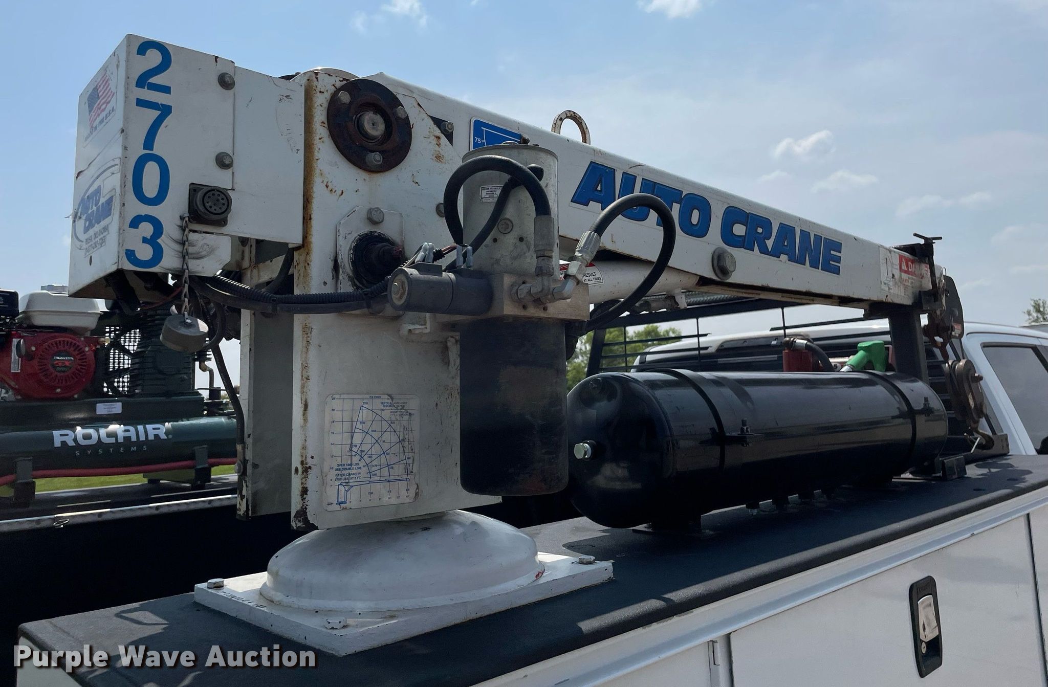 2018 Ford F350 Super Duty Crew Cab utility bed pickup truck. Miles: 135,138 on odometer, VIN: 1FD8W3HT9JEB40176. Engine Displacement: 6.7L V8 OHV, Cylinders: 8, Fuel type: Diesel. Transmission Automatic. Chassis Four wheel drive. Interior AC, Heat, Heated mirrors, Power windows, Power locks, Cruise control, Backup camera. Features Bed Knapheide 6108D54, 9' 8" L x 96" W, Air compressor Rolair MDL6590HK18-0279, Crane Autocrane 2703, Maximum boom length: 14' Maximum lift capacity: 2,700 lbs, Controls: remote, Auxiliary fuel tank Fill Rite pump, Hose reel. Tires Size: 265/70R17. Notes EGR delete. Kansas title. Title distribution may be delayed up to 14 days from verification of funds. Mayer Specialty Services, LLC. Goddard, KS 67052