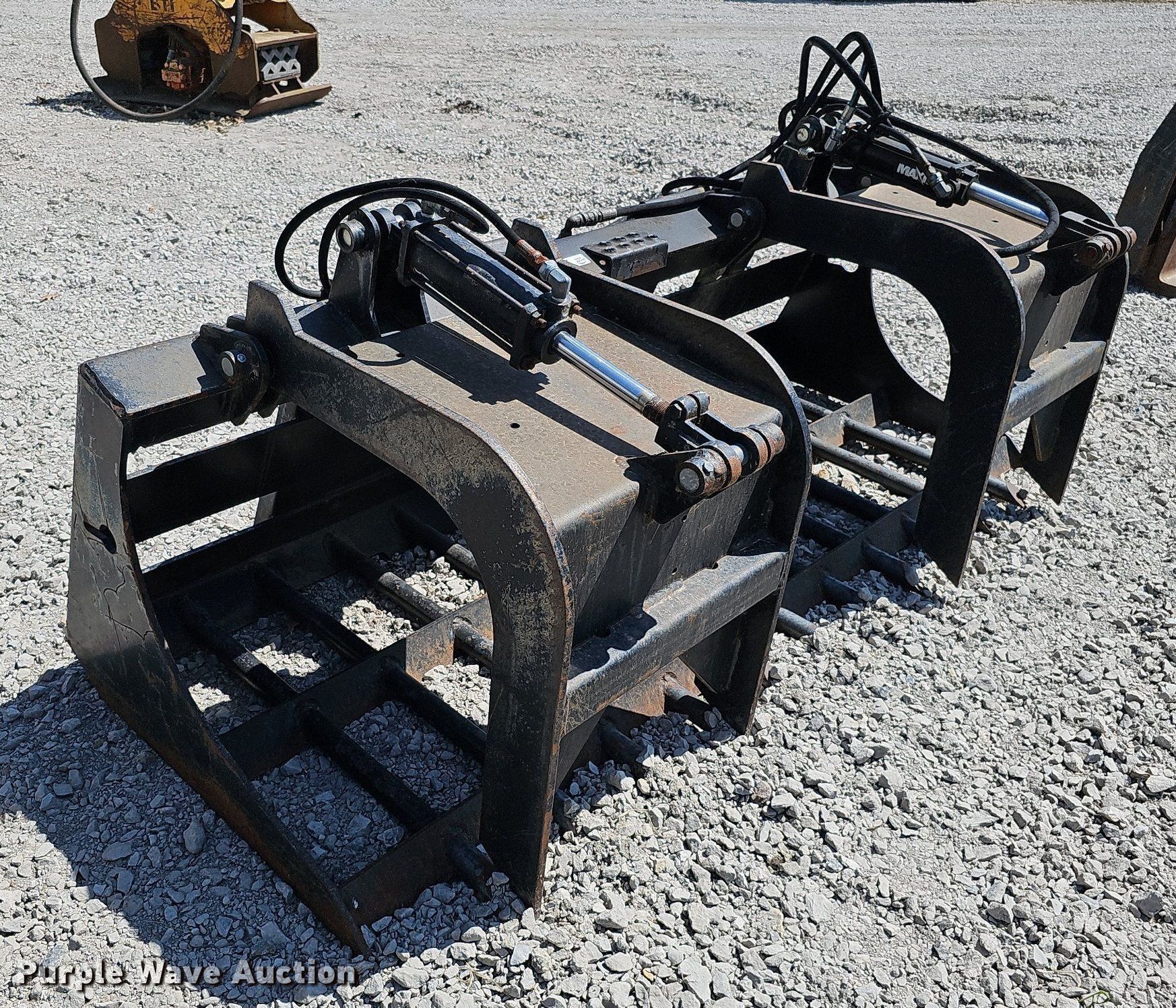 Purple Wave is selling a used Skid Steer Attach. in Iowa. This item is a 74" W skid steer rock grapple bucket with the following: 74" W skid steer rock grapple bucket. 1841 180th Street. Red Oak, IA 51566