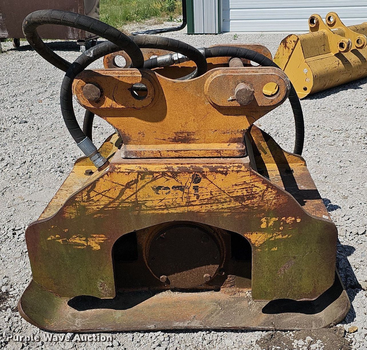Purple Wave is selling a used Excavator Attach. in Iowa. This item is a BTI excavator plate compactor with the following: Length: 44", Width: 28"