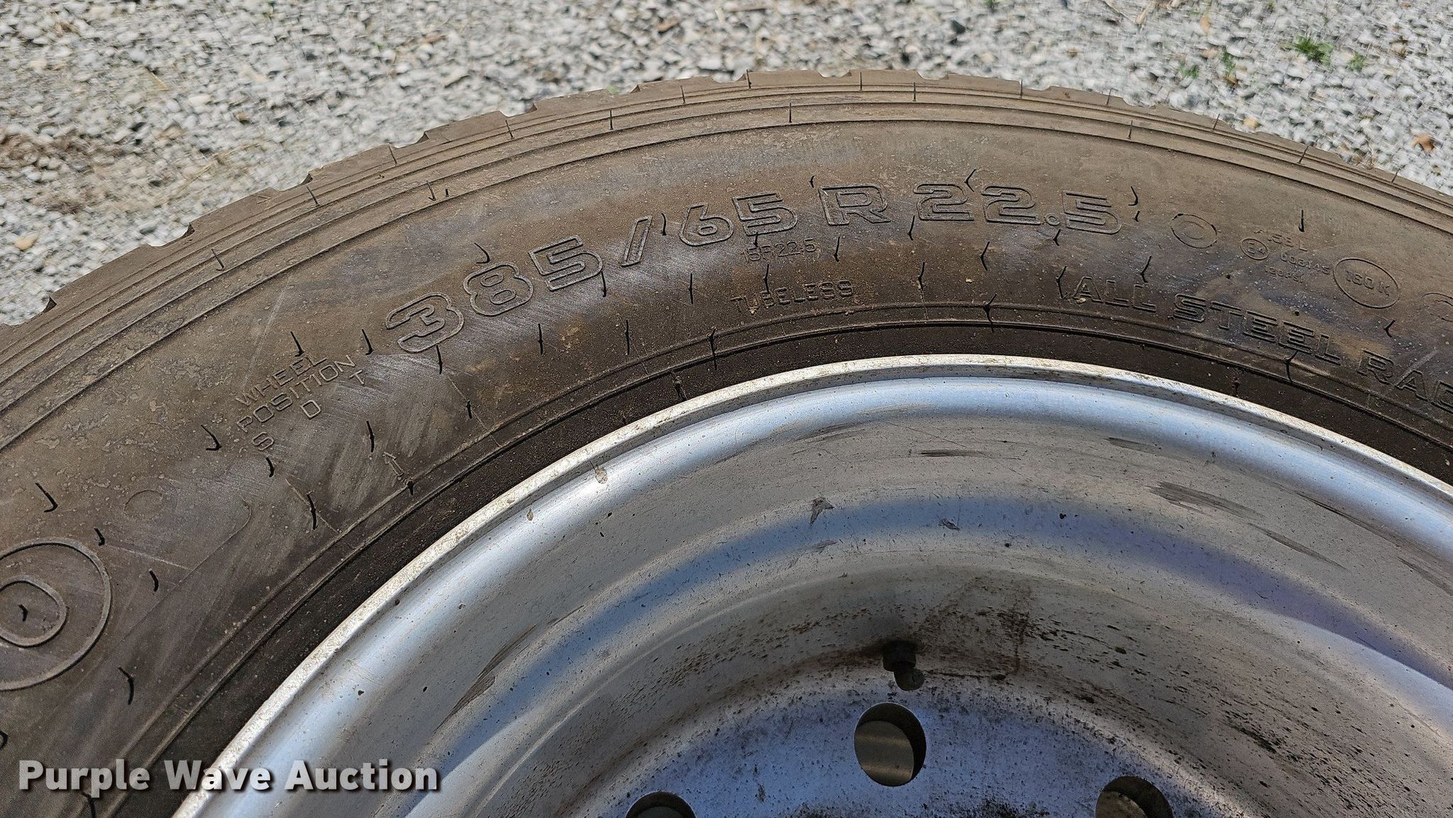 Purple Wave is selling a used Fleet Tires in Iowa. This item is a (2) Kumho 385/65R22.5 tires and wheels with the following: 10 lug aluminum wheels