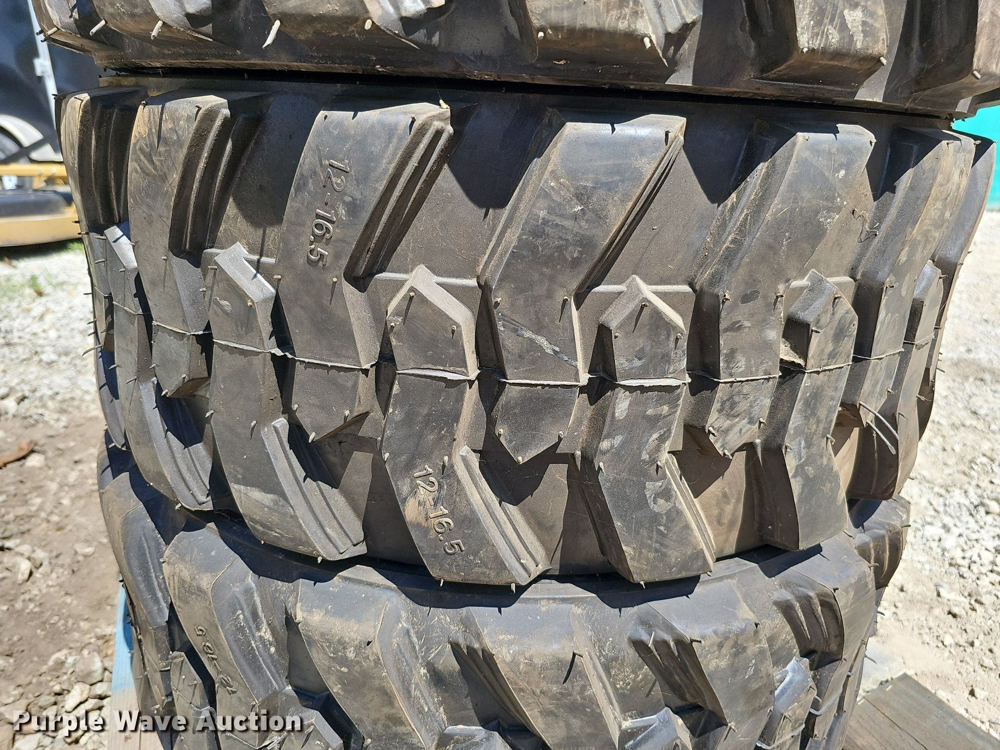 Purple Wave is selling a used Industrial Tires or Tracks in Iowa. This item is a (4) 12-16.5 tires with the following: Unused