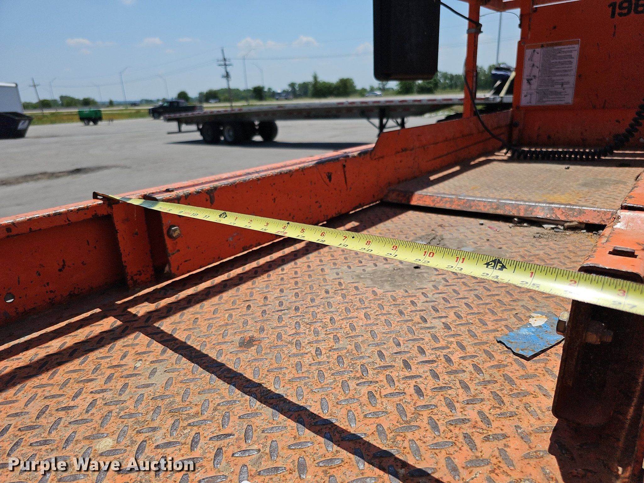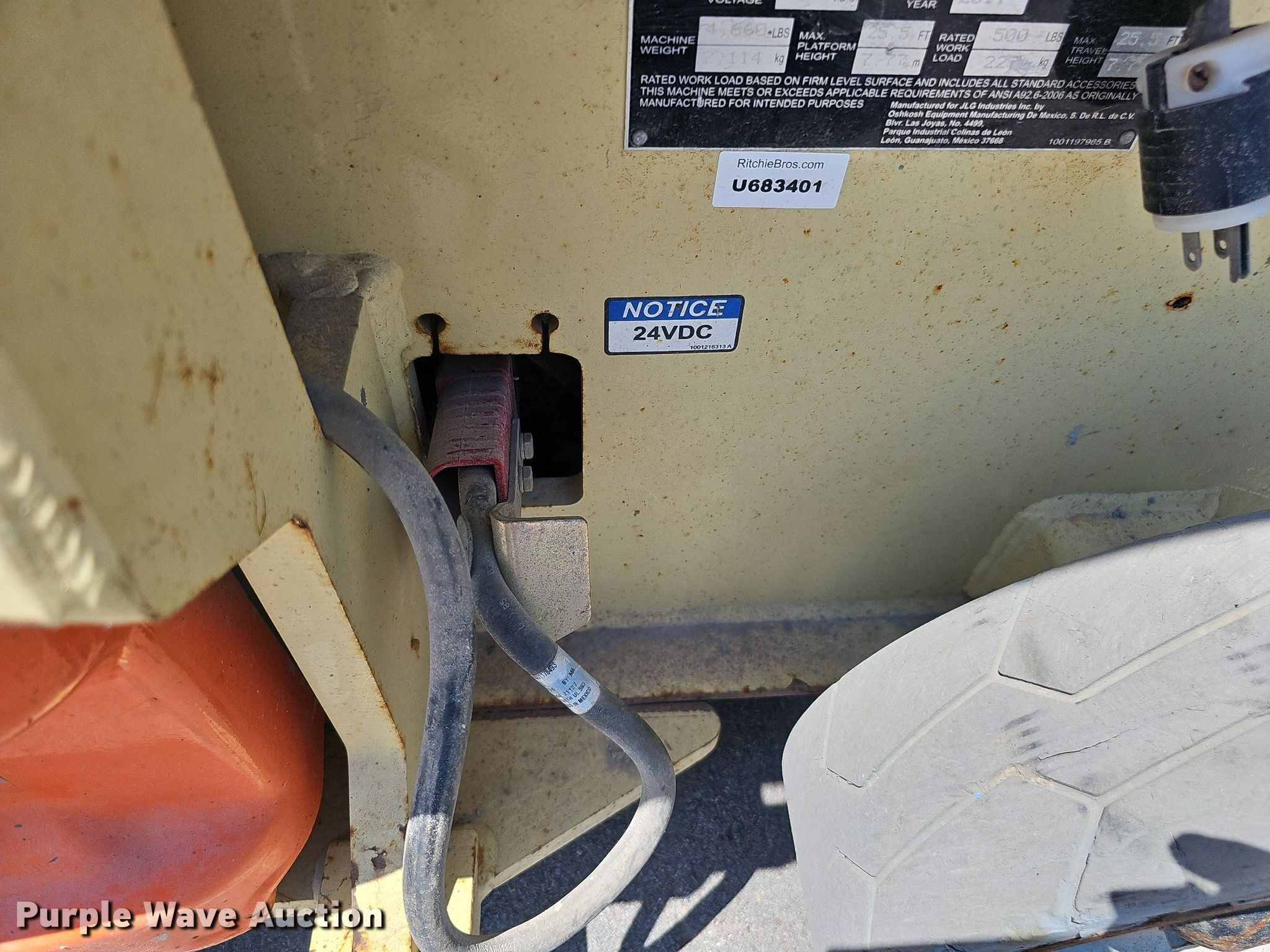 2017 JLG 2632ES scissor lift. Hours: 28 on meter, Serial: M200006750. Electric Motor Volts: 24. Features Maximum lift capacity: 500 lbs, Maximum lift height: 25.5', Platform: 122" L x 29" W, AC power outlet, Controls: Remote Control, Ground, Platform extensions: Manual, Safety alarm. Tires Tire size: 406x125x5, Solid. Notes Manual. Jordan Machinery / S & N Auto Sales. 25050 US Hwy 275. Waterloo, NE 68069