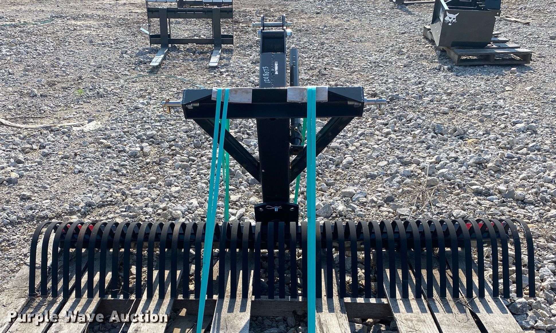 Purple Wave is selling a used Skid Steer Attach. in Oklahoma. This item is a Bobcat Rake 84 skid steer rake with the following: Serial: B4V600193, Width: 83"