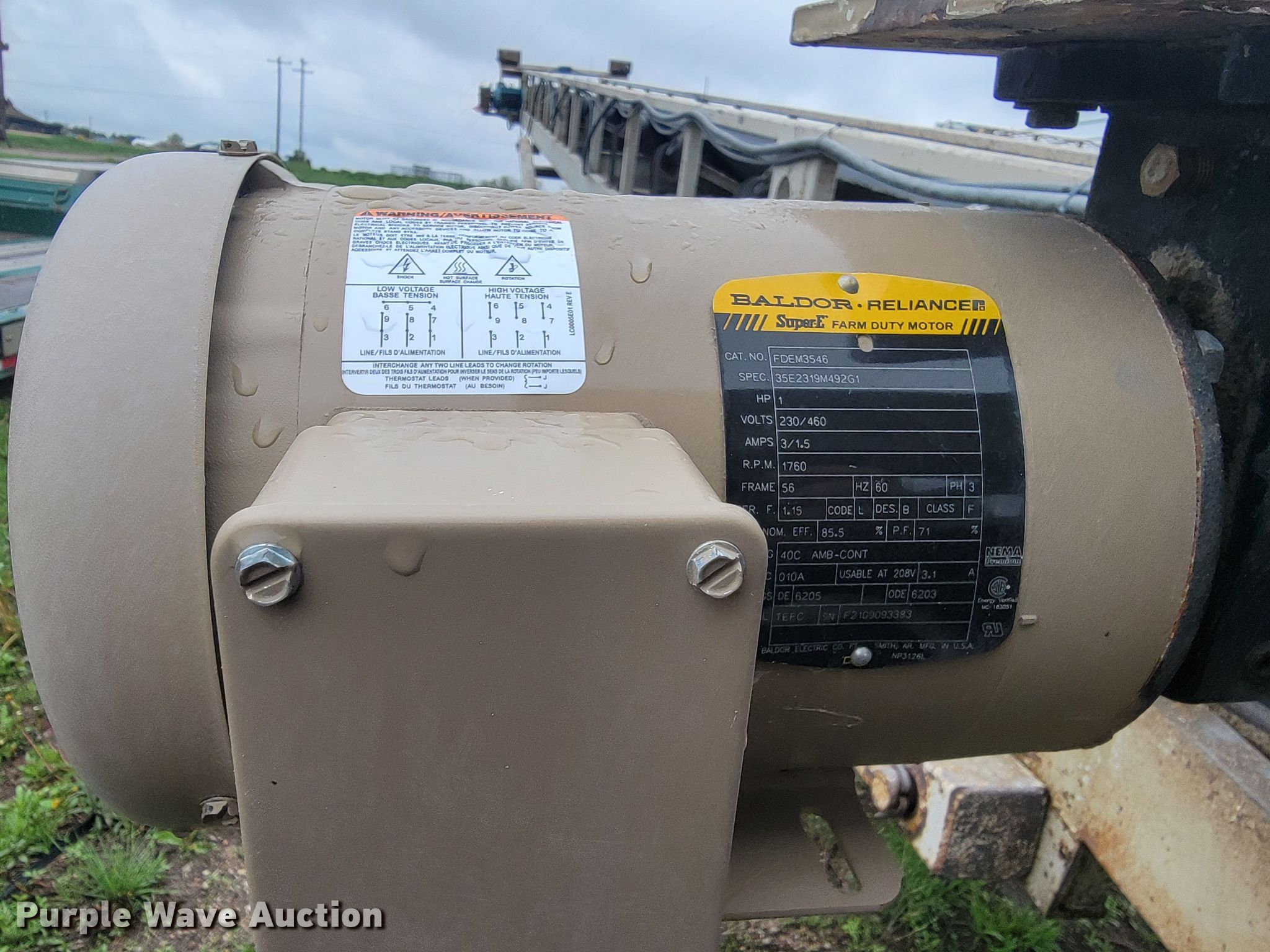Masaba conveyor. Serial: 2008187. Electric Motor Weg, HP: 20, kW: 15, Volts: 208/230/460, Phase: Three. Features Conveyor Length: 65', Width: 3', Magnet, Input hopper Length: 82", Width: 76". Tires Tire size: 11R22.5. Prouty Construction. 49361 East Douglas Street. O'Neill, NE 68763