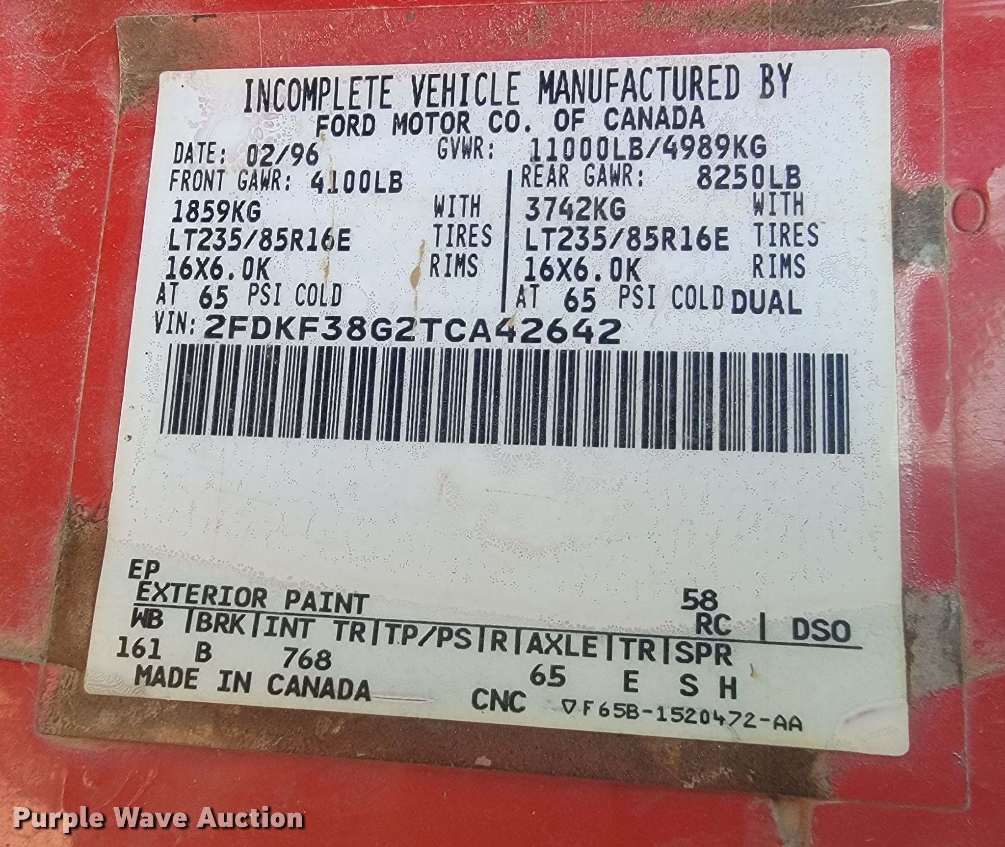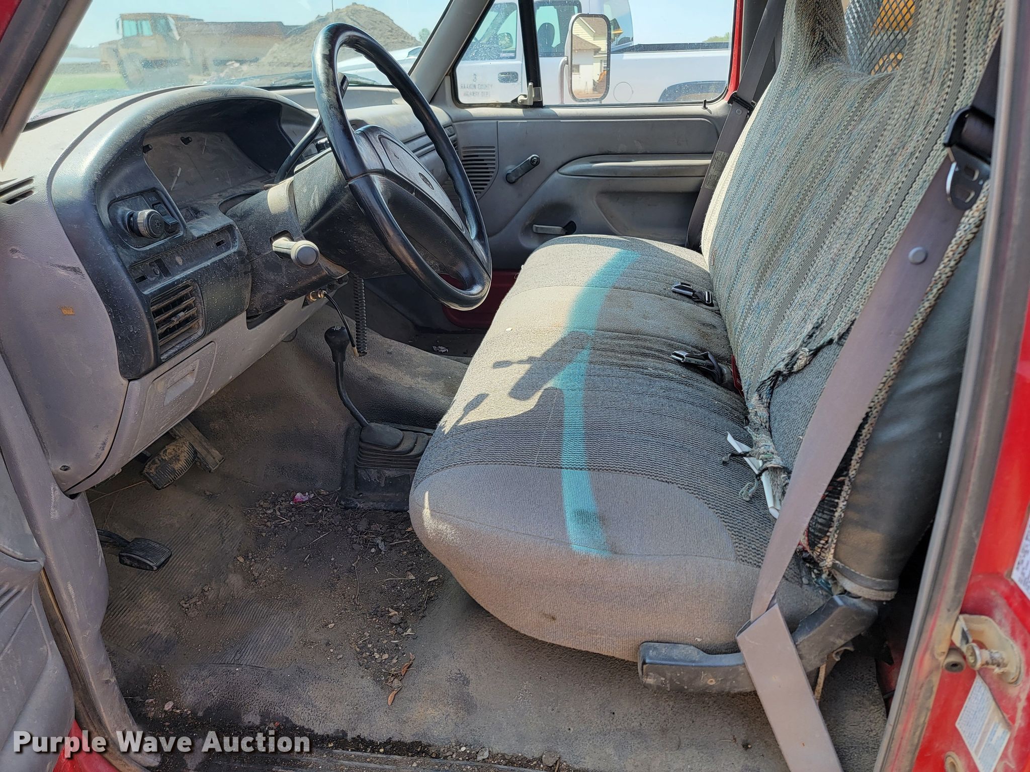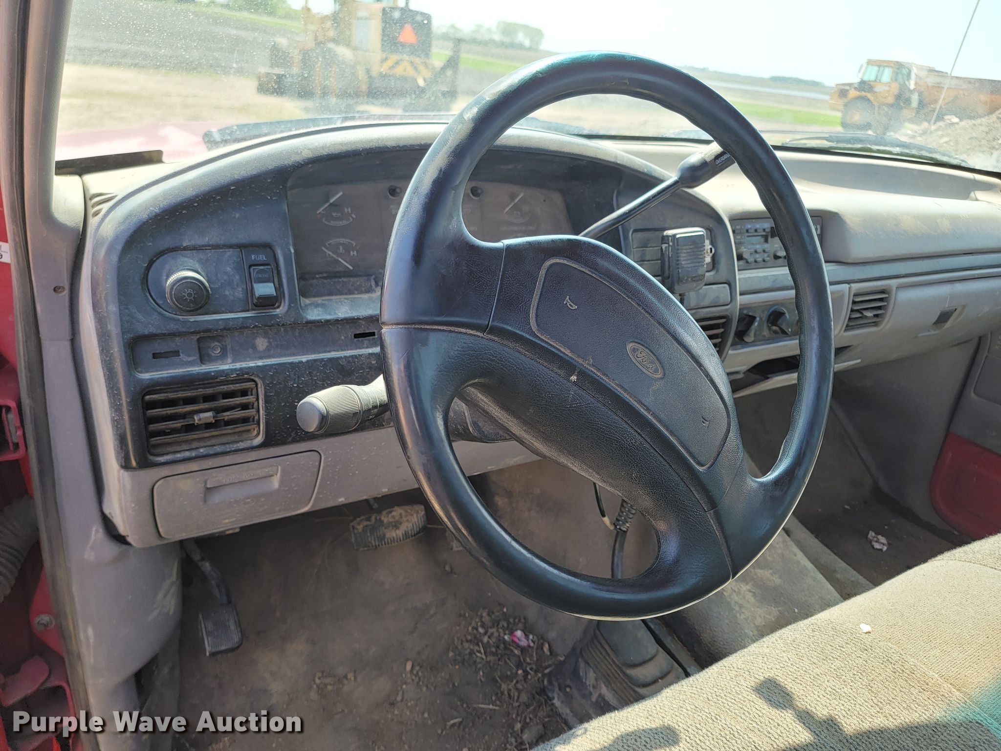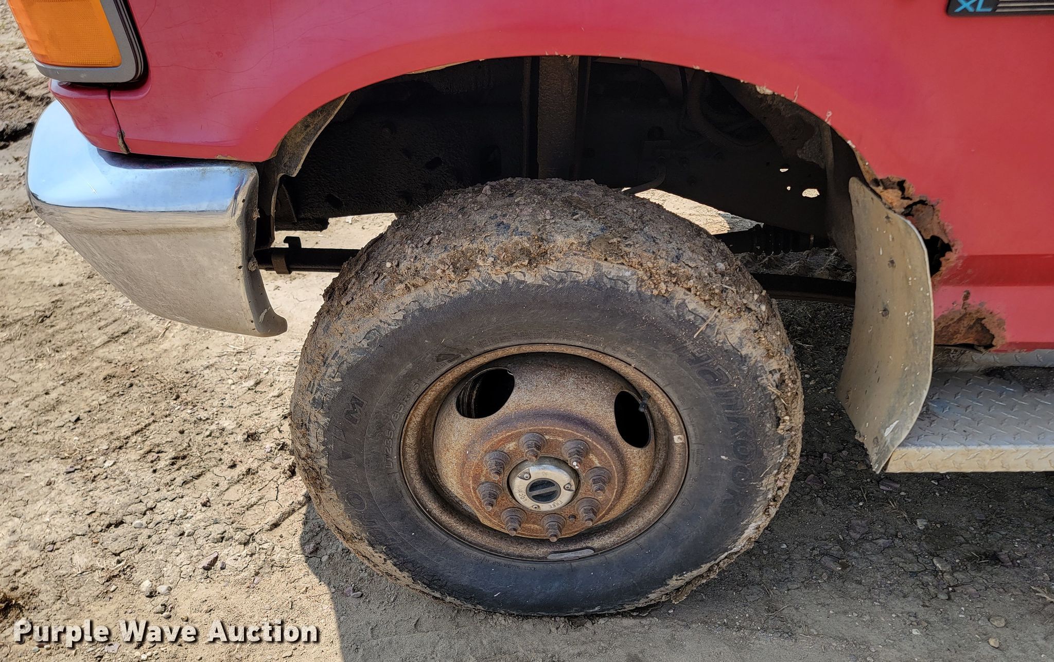 1996 Ford F350 XL flatbed pickup truck. Miles: 180,730 on odometer, VIN: 2FDKF38G2TCA42642. Engine Displacement: 7.5L V8 OHV, Cylinders: 8, Fuel type: Gas. Transmission Automatic, Four wheel drive. Interior Heat. Features Flatbed 12' 3" L x 84" W, Hitch: Gooseneck. Tires Size: LT235/85R16. Minnesota title. Title distribution may be delayed up to 14 days from verification of funds. Nooman Excavating. 2756 181st Street. Currie, MN 56123