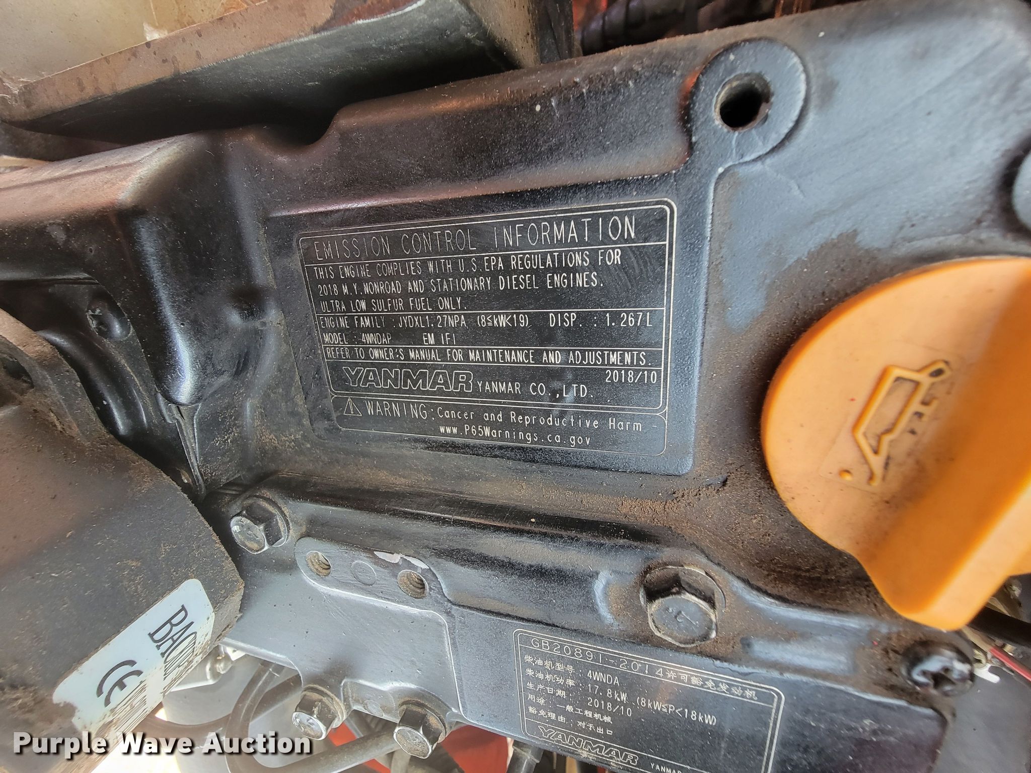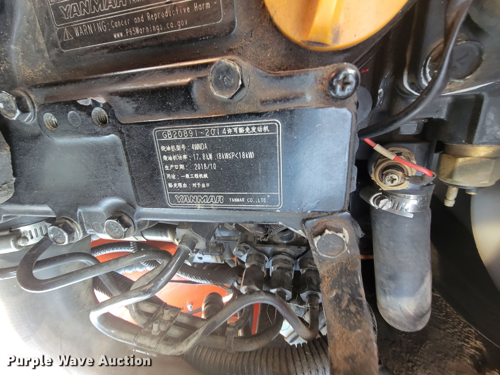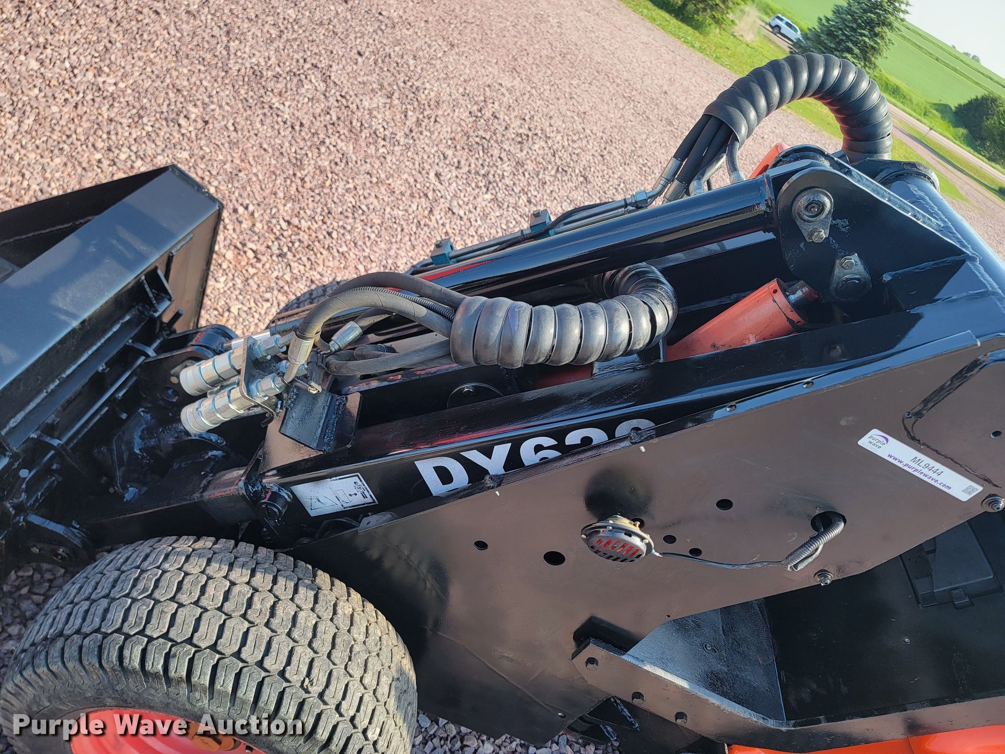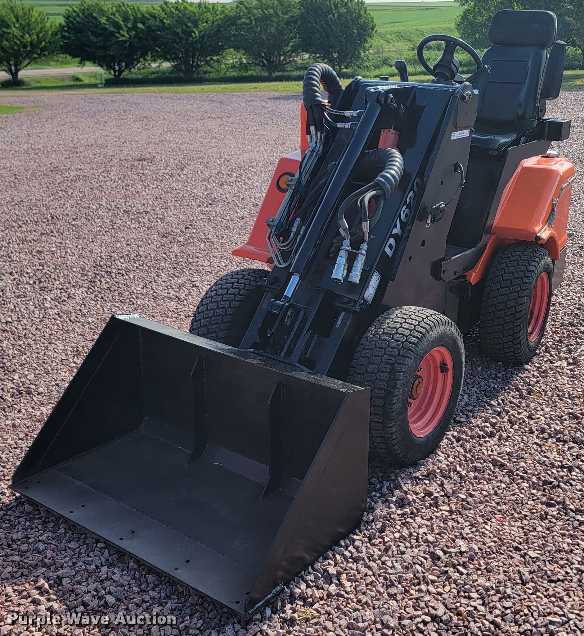 Taian DY620 compact wheel loader. Hours: 460 on meter, Serial: M2099189. Engine Yanmar 4WNDAP, Displacement: 1.267 liter, Cylinders: 3, Fuel type: Diesel. Transmission Hydrostatic. Operators station Bucket controls: Joystick. Features Auxiliary hydraulics: Front, Quick coupler: Manual, Bucket Width: 40", Maximum Lift: 500KG. Tires Front: 23x8.50-12, Rear: 23x8.50-22. Brandon, SD 57005