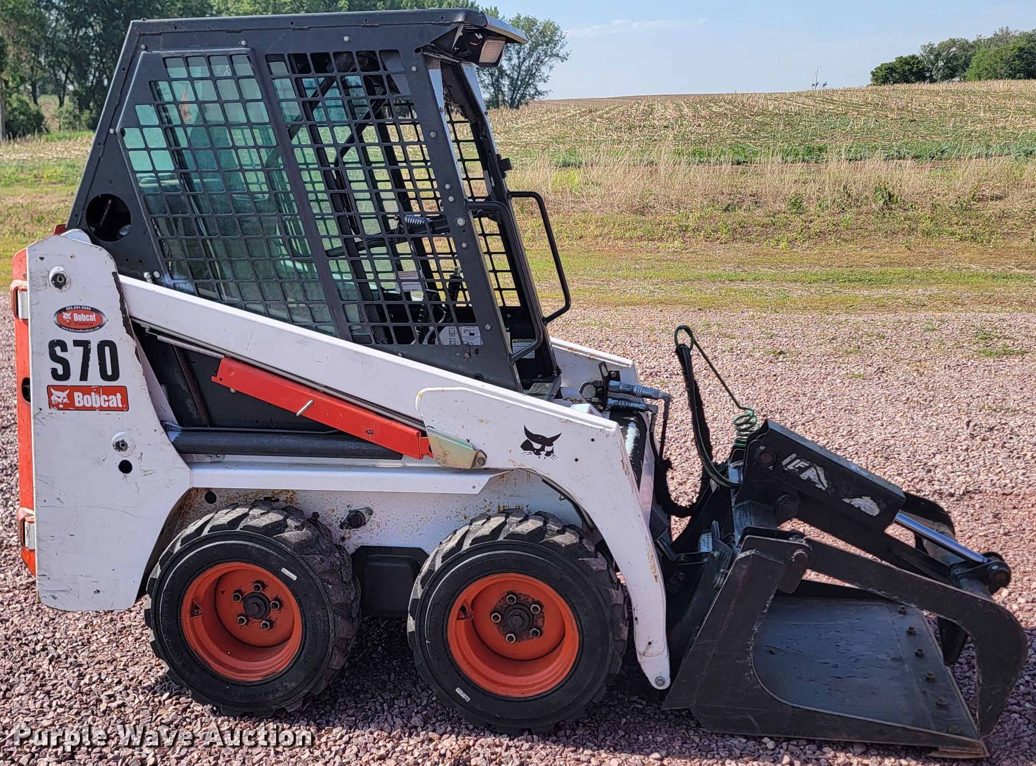 Purple Wave is selling a used Skid Steer Loader in South Dakota. This item is a 2013 Bobcat S70 skid steer loader with the following: Hours: 1,148 on meter, Serial: A3W618130