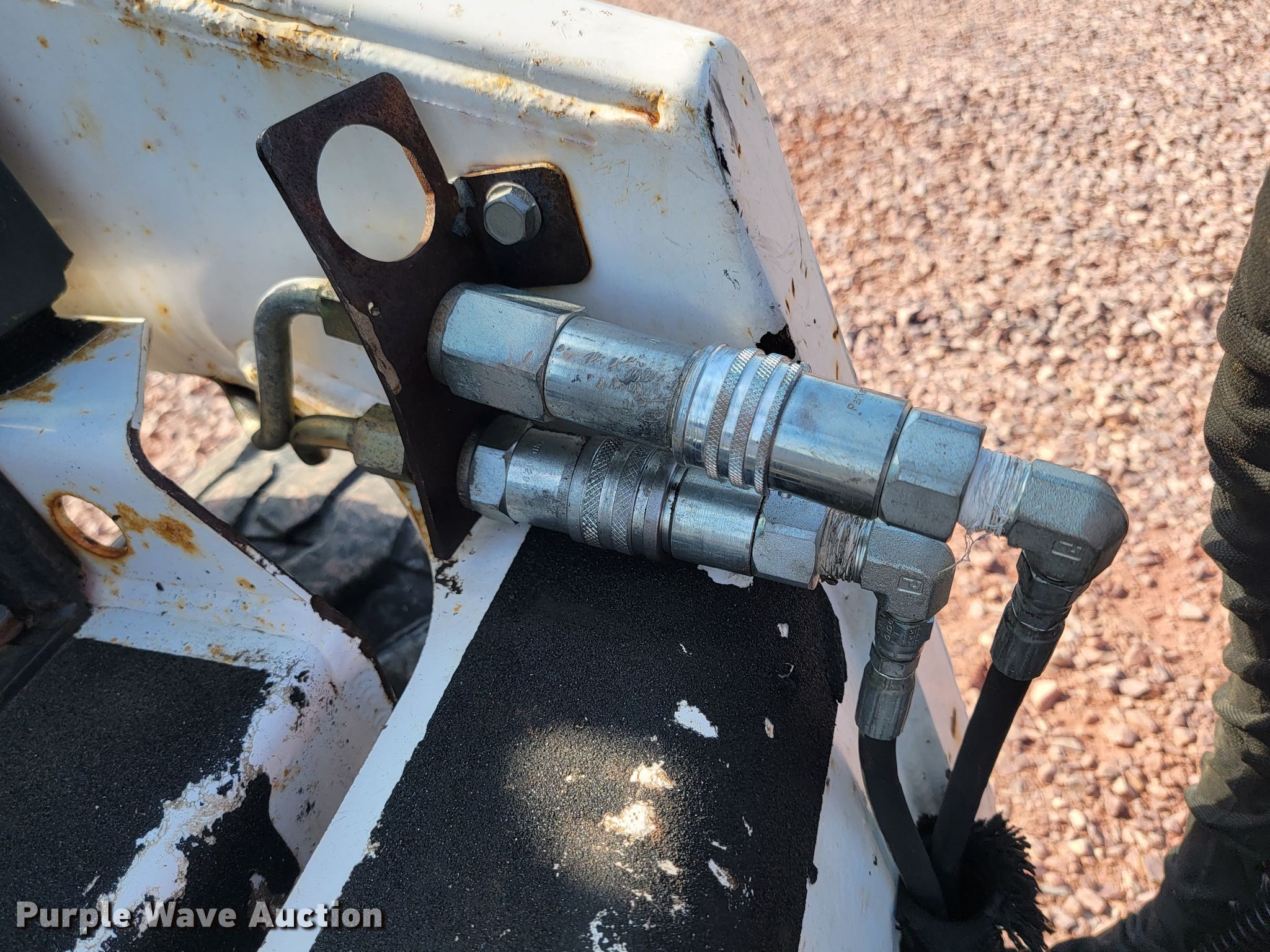 2013 Bobcat S70 skid steer loader. Hours: 1,148 on meter, Serial: A3W618130. Engine Kubota D1005-ET01, Displacement: 1.0, Cylinders: 3, Fuel type: Diesel. Transmission Hydrostatic. Operators station Heat, Bucket control: Foot. Features Auxiliary hydraulics, Quick coupler: Manual, Bucket Width: 36", Cutting edge: Bolt-on, 3 tine grapple fork. Tires Size: 23x8.50-12. Brandon, SD 57005