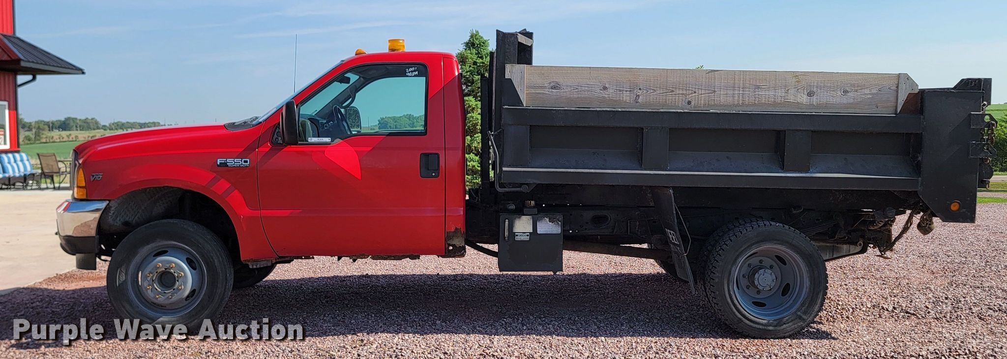 Purple Wave is selling a used Construction Dump Truck in South Dakota. This item is a 2001 Ford F550 Super Duty XL dump truck with the following: Miles: 90,136 on odometer, VIN: 1FDAF56SX1EA14111