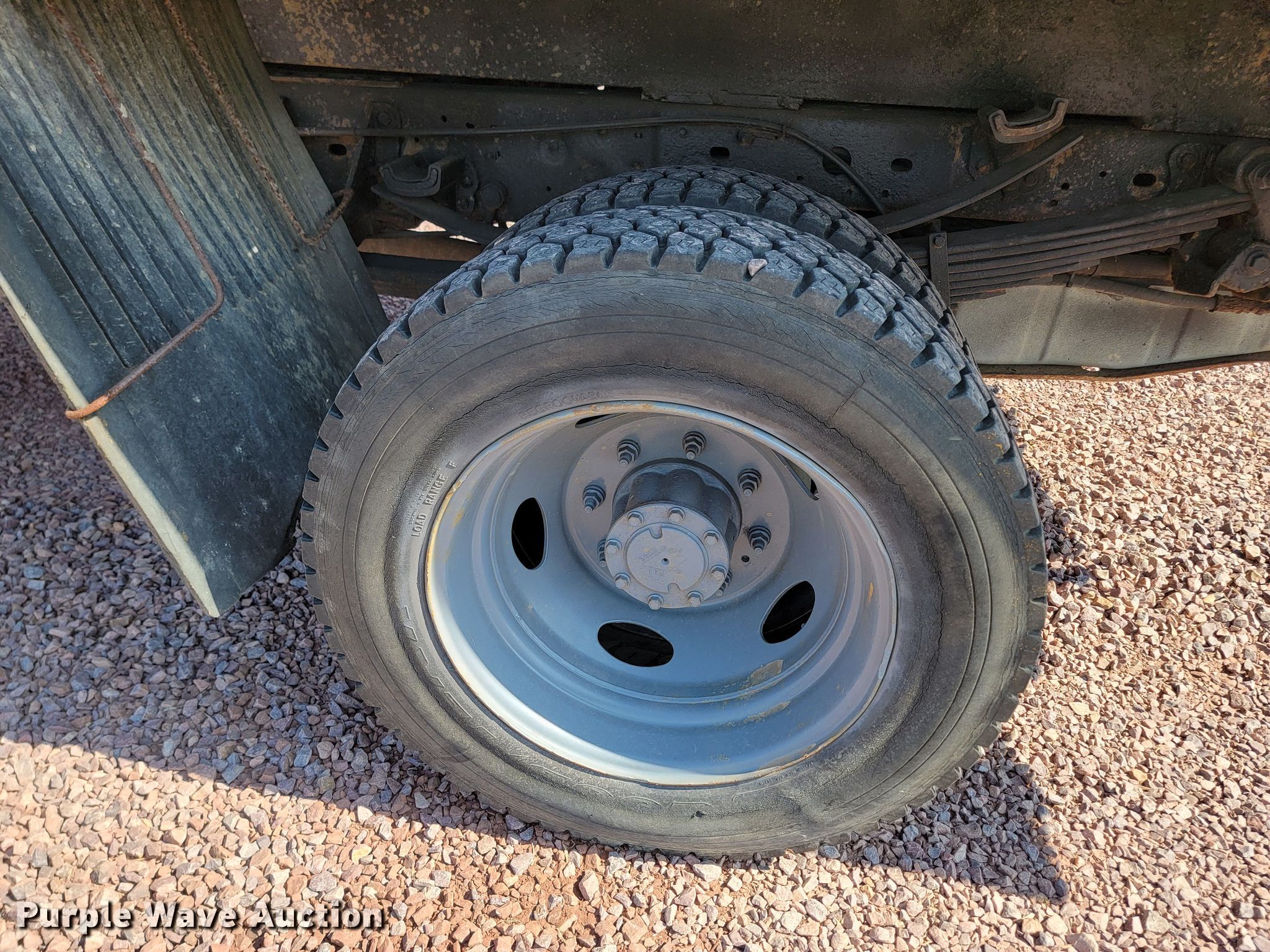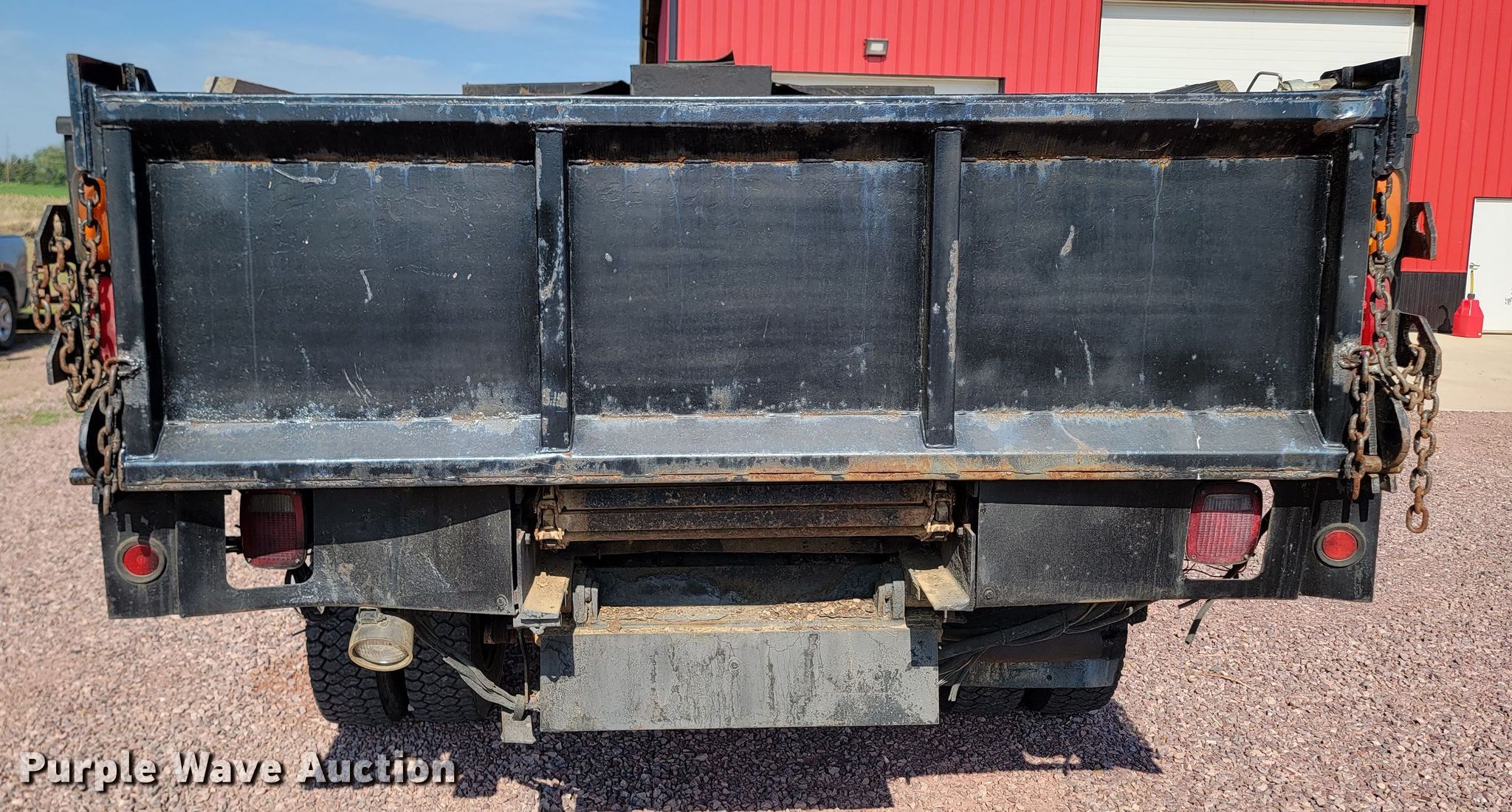 2001 Ford F550 Super Duty XL dump truck. Miles: 90,136 on odometer, VIN: 1FDAF56SX1EA14111. Engine Displacement: 6.8L V10 SOHC, Cylinders: 10, Fuel type: Gas. Transmission Automatic. Chassis Axles: Single, Suspension: Spring, Brakes: Hydraulic, PTO. Interior AC, Heat. Features Dump bed 11' L x 96" W, Side height: 20", Side board height: 11", Bed type: Steel, Ram: Single , End gate: Manual, Floor Conveyor Width: 34". Tires Size: 225/70R19.05. South Dakota title. Title distribution may be delayed up to 14 days from verification of funds. Brandon, SD 57005