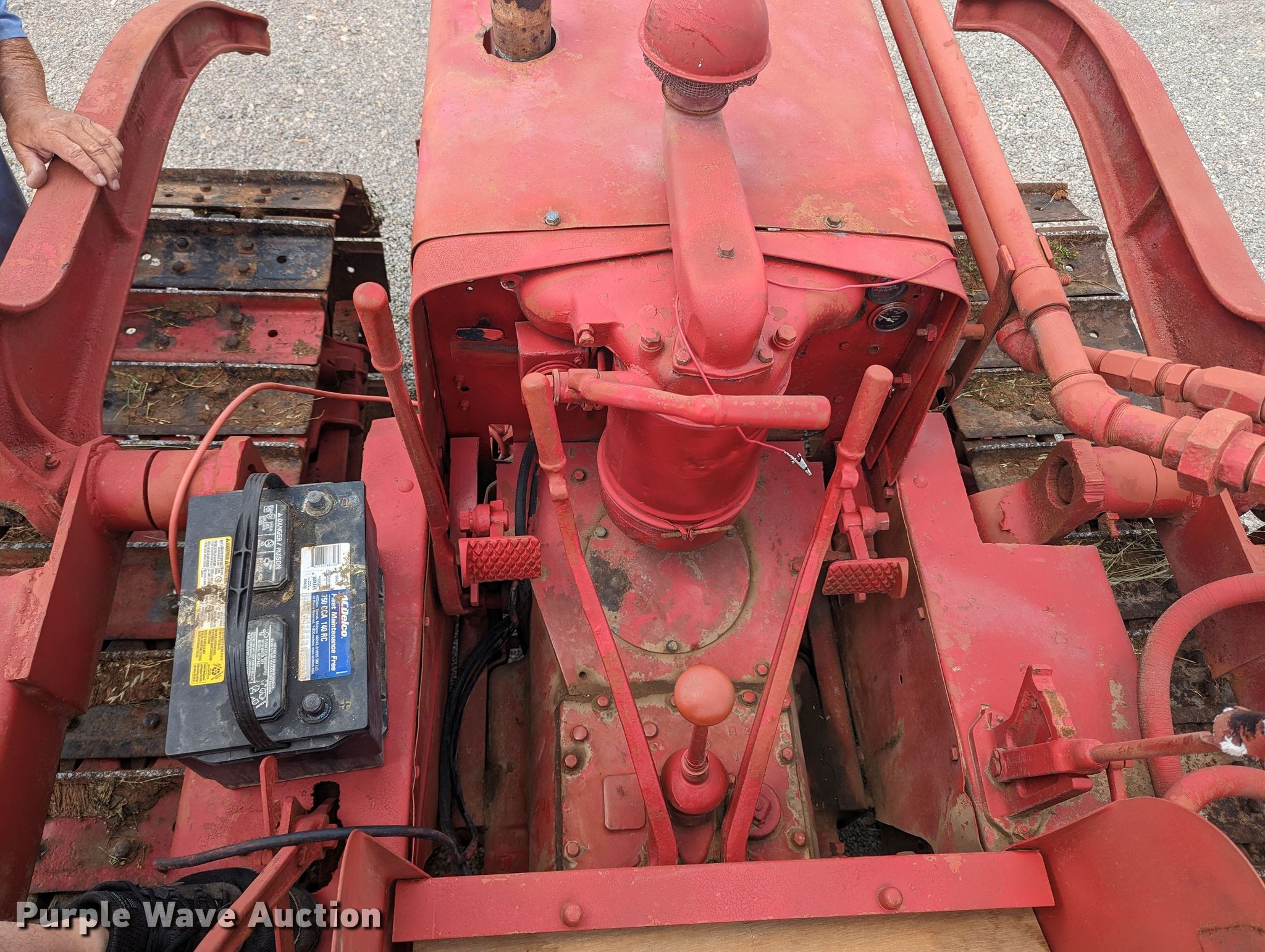 International T9 dozer. Serial: 10B16571T7BKC. Engine Cylinders: 4, Fuel type: Gas. Transmission Direct-drive, 5F - 1R. Operators station Steering: Clutch brake. Features Dozer blade Type: Straight, Width: 96" W, PTO: 540. Tracks Width: 16", Grouser pads: Single, Bottom rollers: 4. Notes Right side clutch brake issues. Miller Brothers Trucks. Oklahoma City, OK 73156