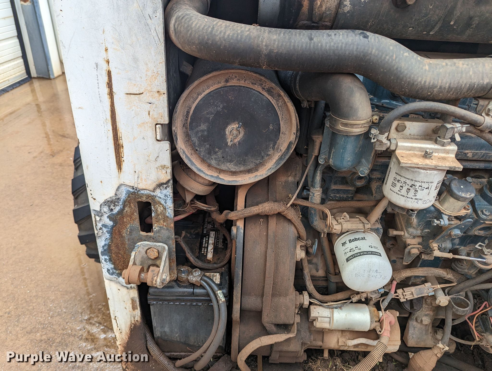 2004 Bobcat S300 skid steer loader. Hours: 1,934 on meter, Serial: 525813285. Engine Kubota V3300-DI-T-EU2, Serial: 3KBXL03 3AAD, Cylinders: 4, Fuel type: Diesel. Transmission Hydrostatic, Two speed travel. Operators station OROPS, Bucket control: Foot. Features Auxiliary hydraulics, Quick coupler: Manual, Bucket Width: 66", Teeth: Bolt-on. Tires Front: 12-16.5. Basin Environmental & Safety Technologies. Oklahoma City, OK 73156